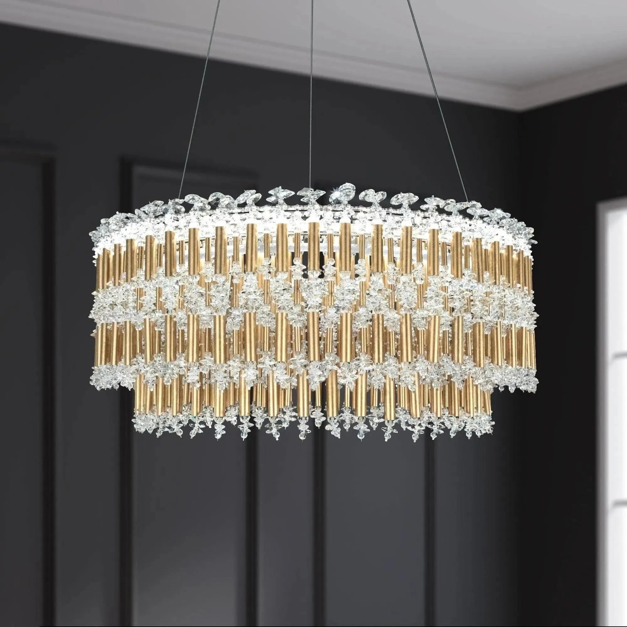 Travel to a paradise of natural splendor. Inspired by the Zen of dense bamboo forests, Tahitian is ideal for upscale dining and entertaining spaces. The built-in adjustable LEDs offer your choice of 3000K, 3500K or 4000K color temperature illumination. Available in Heirloom Gold, Black and Antique Silver.