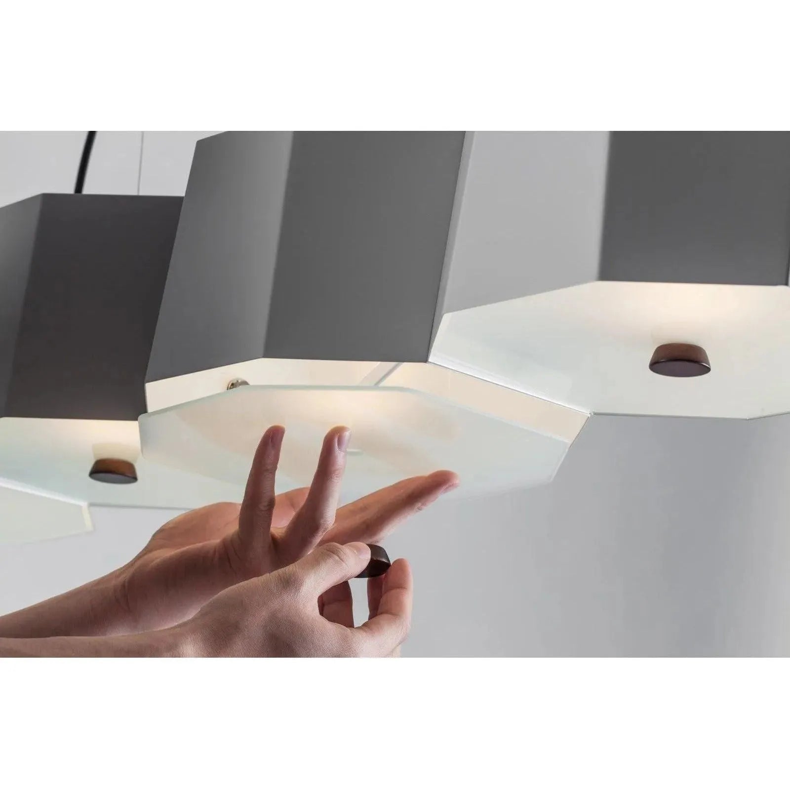 ZHE is inspired by a wood from the Orient that is as hard as rock. The metal lampshade is meticulously and painlessly hand welded to resemble a cluster of rocks together. The wooden stoppers under each frosted diffuser not only introduce the warm elements of wood, but functionally it softens up the overall light source. ZHE exemplifies illumination on a grand scale.