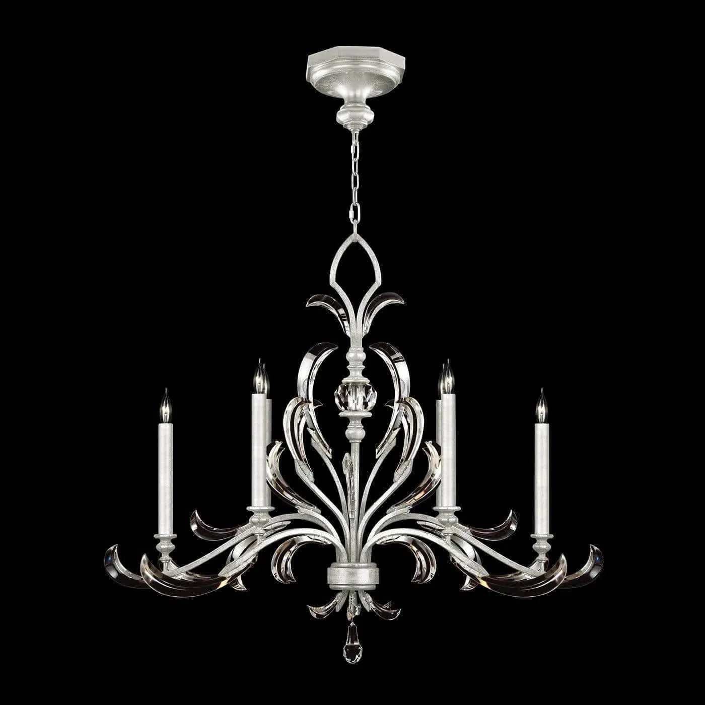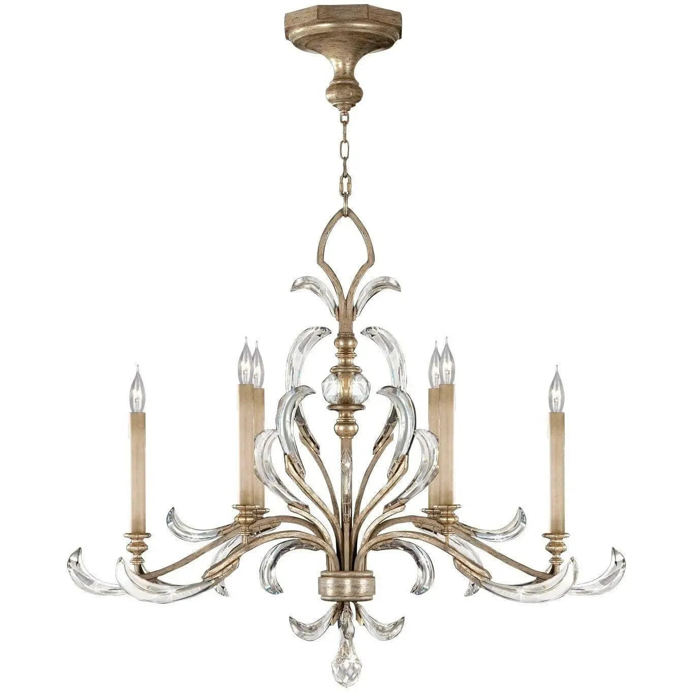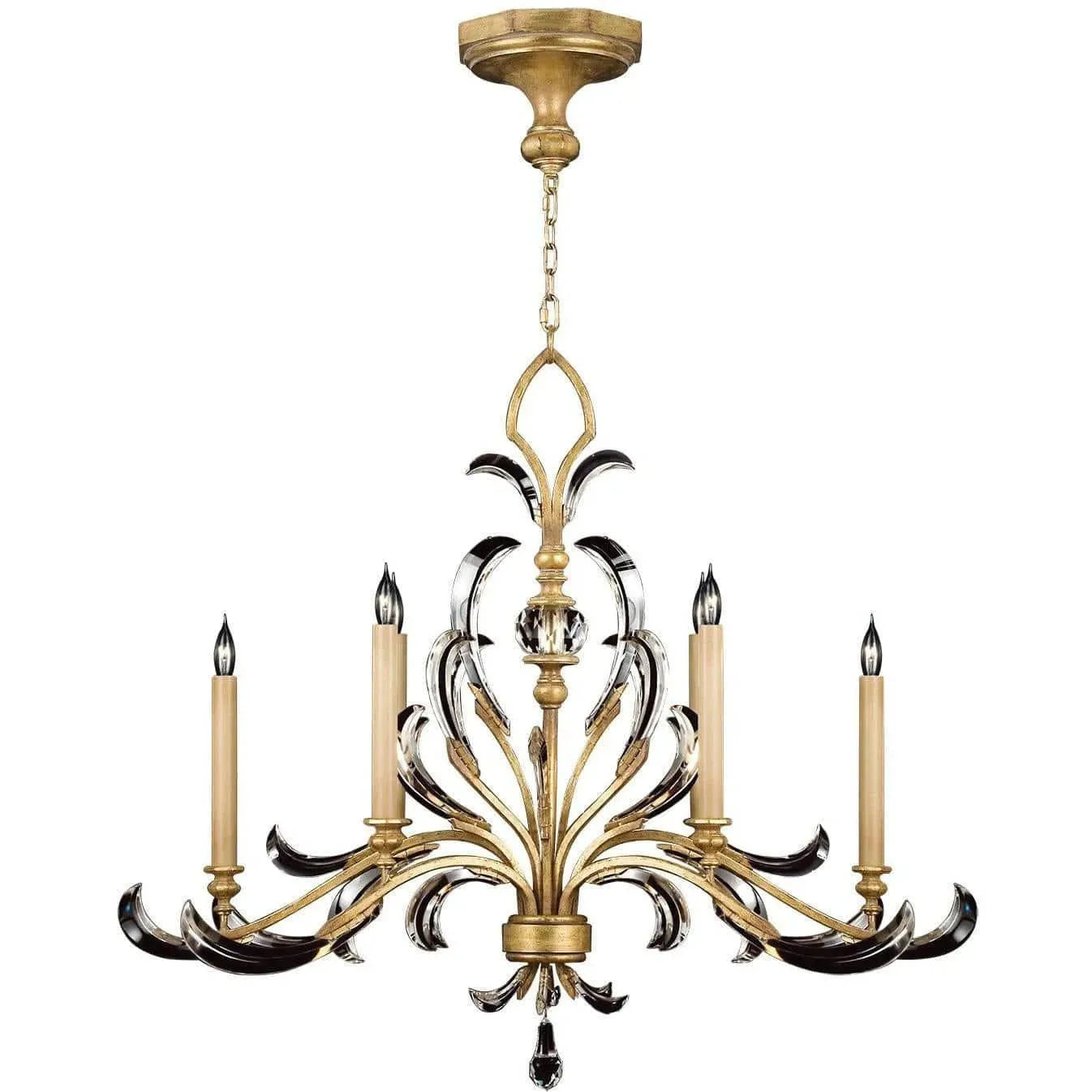 Beveled Arcs 44-Inch Six Light Chandelier from Fine Art Handcrafted Lighting asserts a refined silhouette: graceful, gilded arms rise in a rhythmic arc and pair with precisely cut clear glass blades to create a luminous, sculptural center for any room.