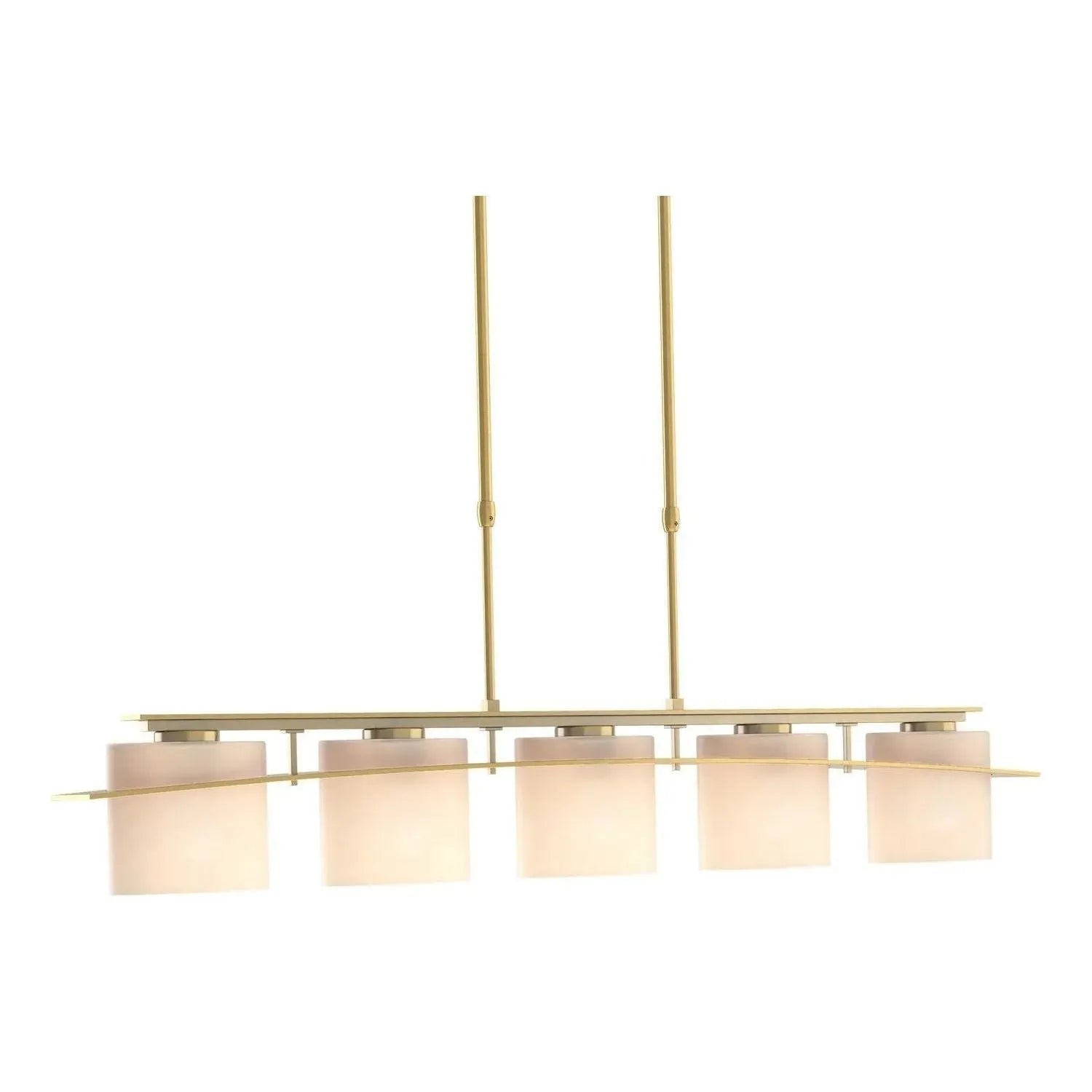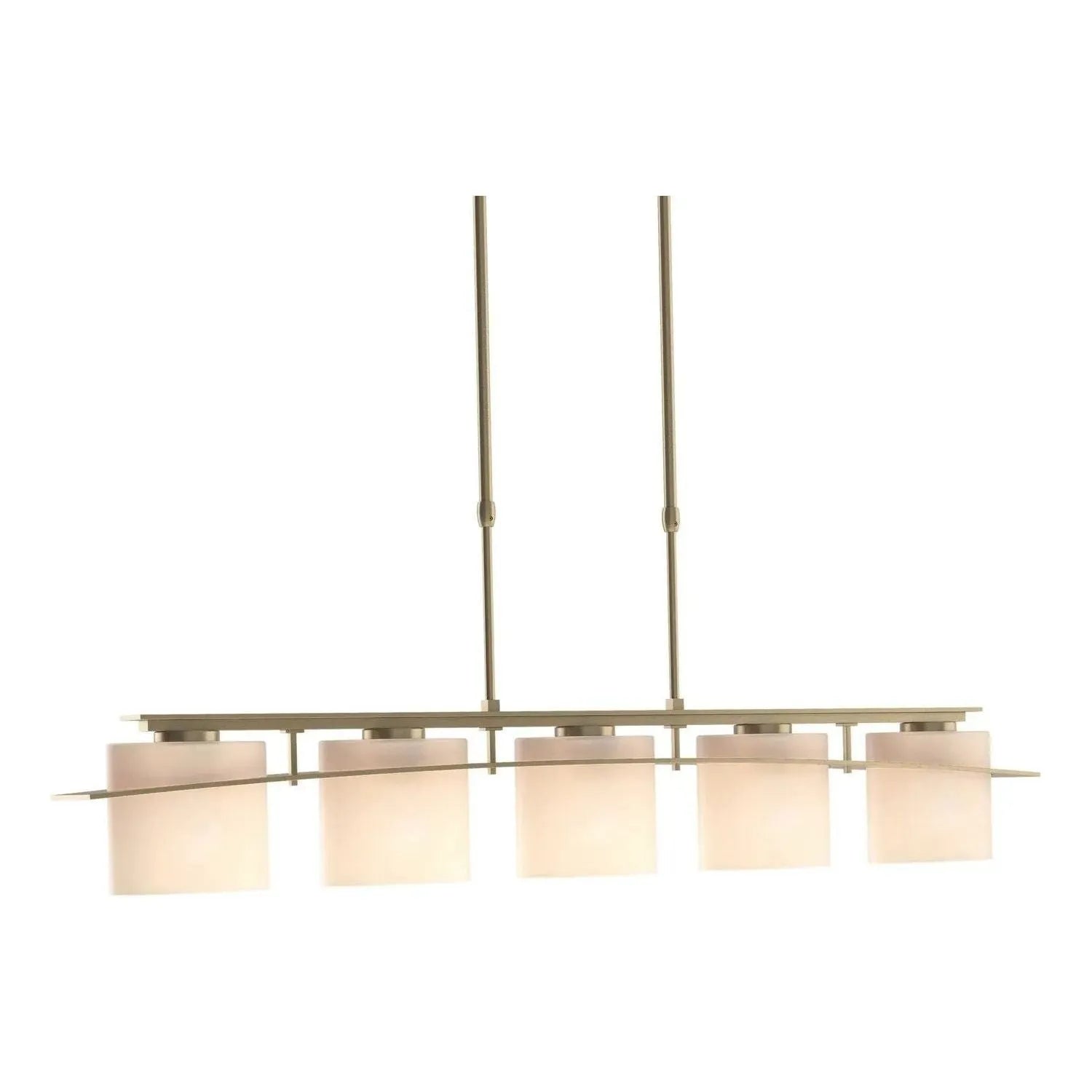 A horizontal steel bar connects tube to glass with each of the five glasses captured in a steel plate. The lines of the plate make it look as though metal has passed through glass rather than the other way around. Crafted by our artisans here in Vermont.