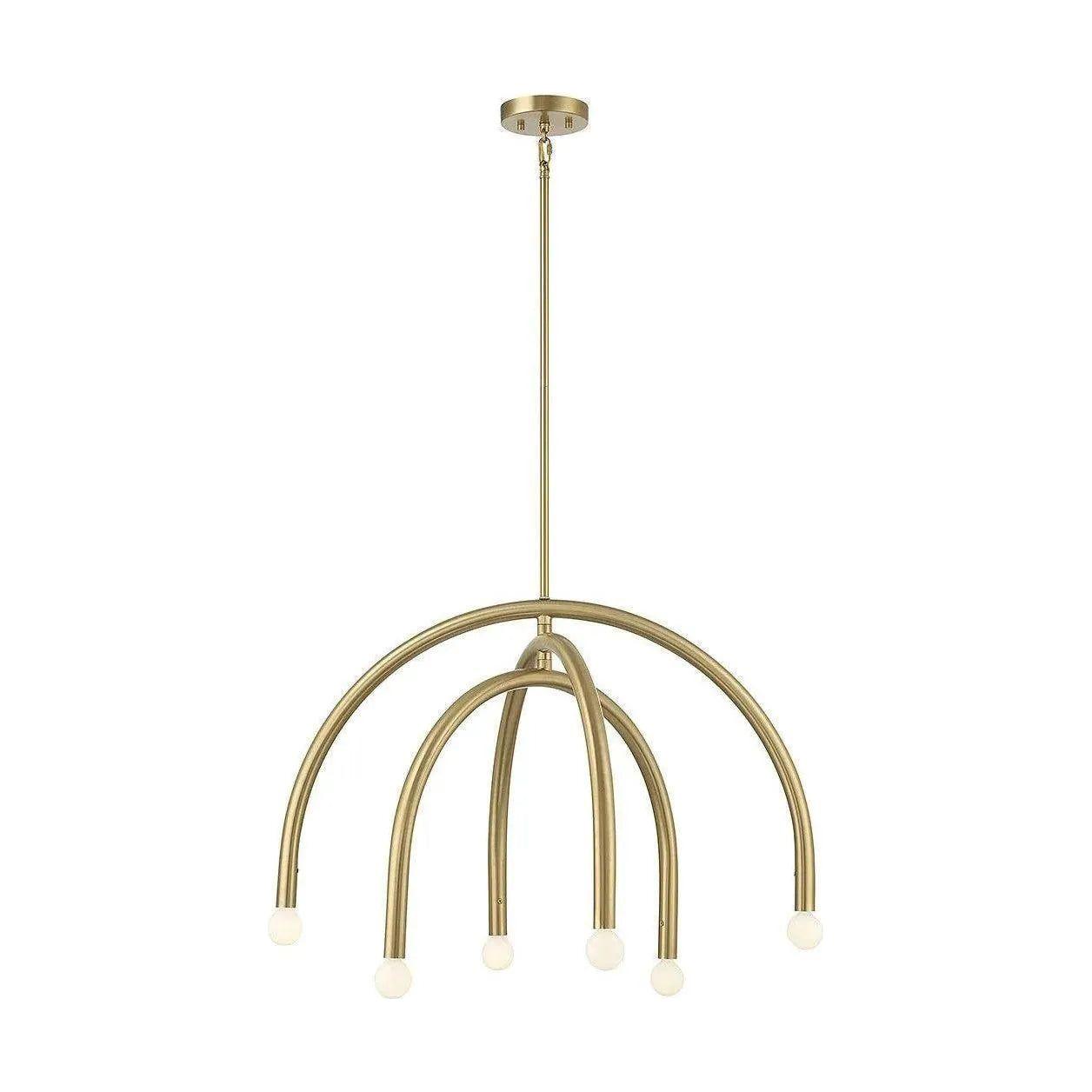Crafted in metal with slender, arced arms and a suspended canopy, this chandelier is finished for contemporary projects and specified for quality-conscious designers. It accommodates six lights on candelabra sockets, is dimmable and LED-compatible for flexible illumination.