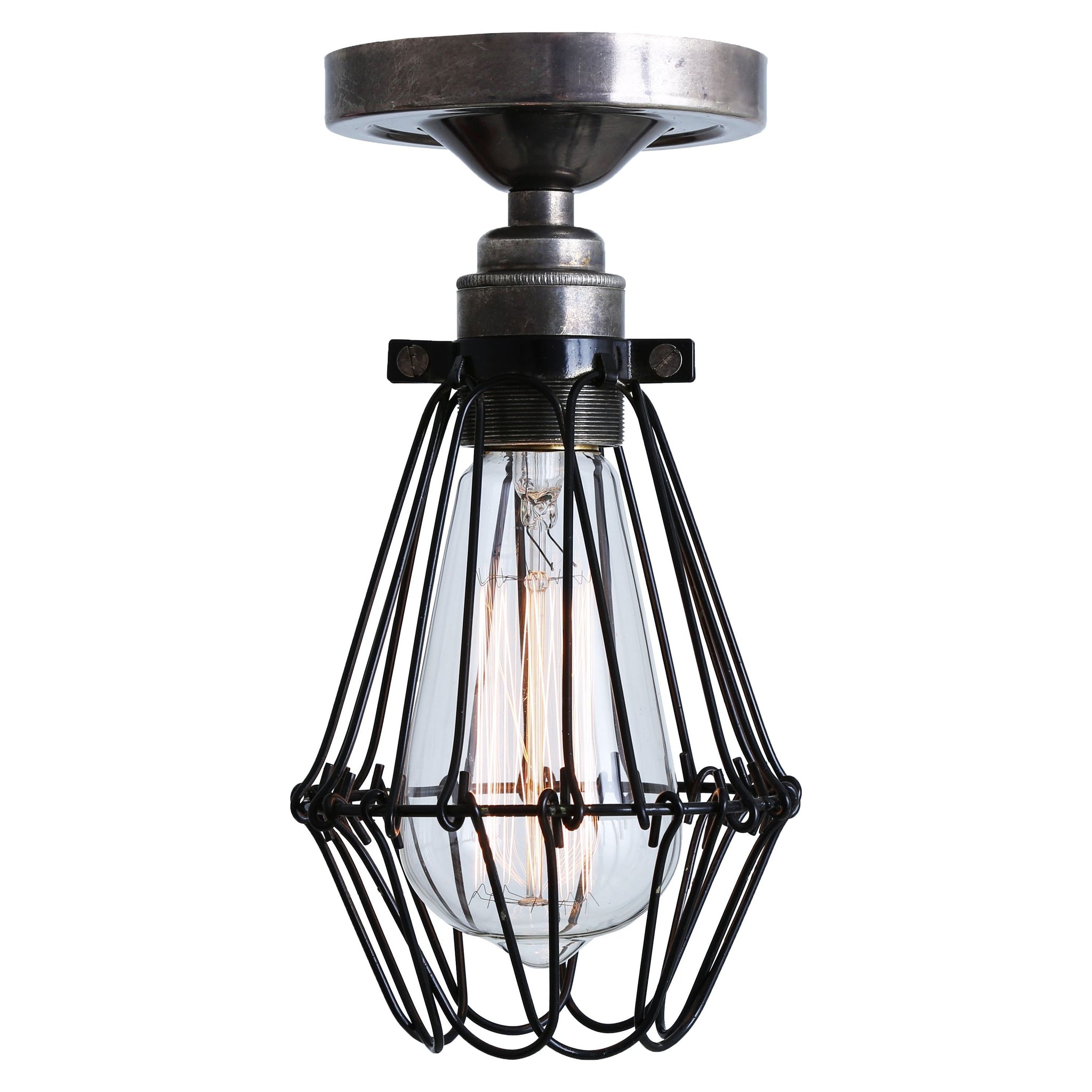 The Apoch Flush Cage Light by Mullan Lighting articulates purposeful form and honest materiality — a compact, ceiling-mounted cage that puts the bulb on display while protecting it with refined industrial geometry. Ideal for corridors, kitchens, and hospitality projects where designer lighting meets practical constraints.
