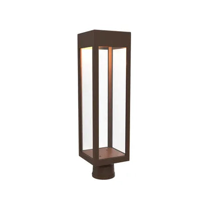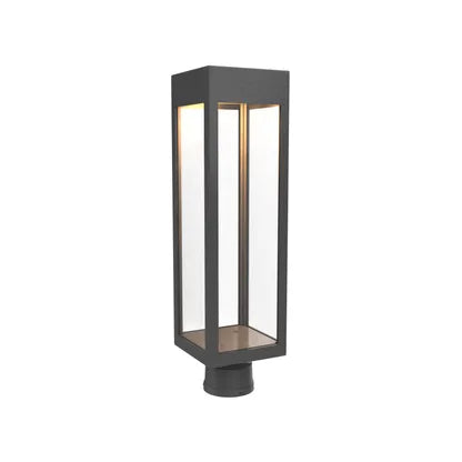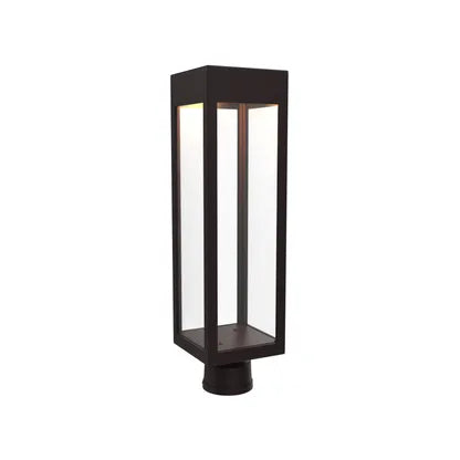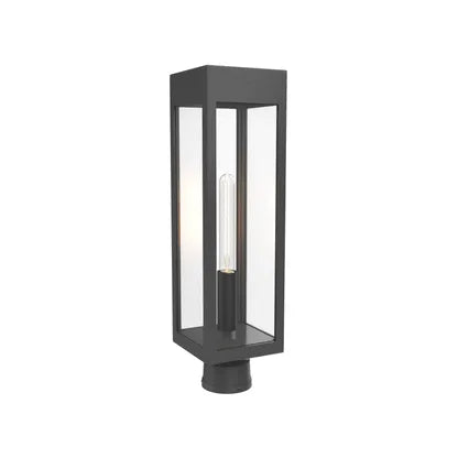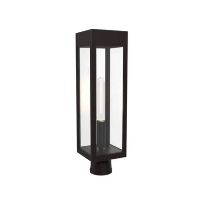Precision craftsmanship is evident in the mitred corners, durable finish and unobtrusive post-mount base that integrates with modern hardware systems. The transparent enclosure delivers even illumination while protecting the bulb, making it ideal for entries, pathways and contemporary façades.