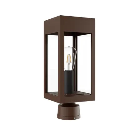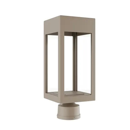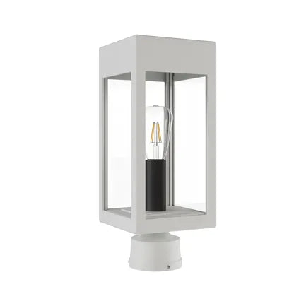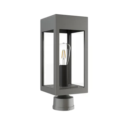 Stockholm Small Post Head by SNOC refines outdoor lighting into a minimalist architectural statement — a rectilinear lantern that balances crisp form with purposeful function. Its open, glass-sided cage frames a visible bulb for ambient, directional light that complements contemporary and transitional exteriors while reading cleanly in curated landscapes and pathways.