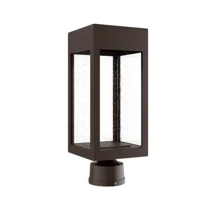 Crafted from corrosion-resistant aluminum and finished in a durable outdoor powder coat, this post head measures approximately 15.25" tall with a 6" width and accepts a 10W LED module (3000K, CRI 90) or standard E26 lamp for specification flexibility. Lifetime warranty on aluminum components underscores its specification-grade quality.