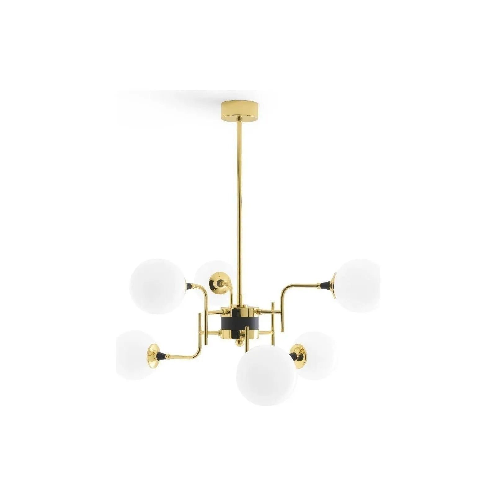 The 1950s charm of the Galassia suspension light, available with six or twelve bulbs,
