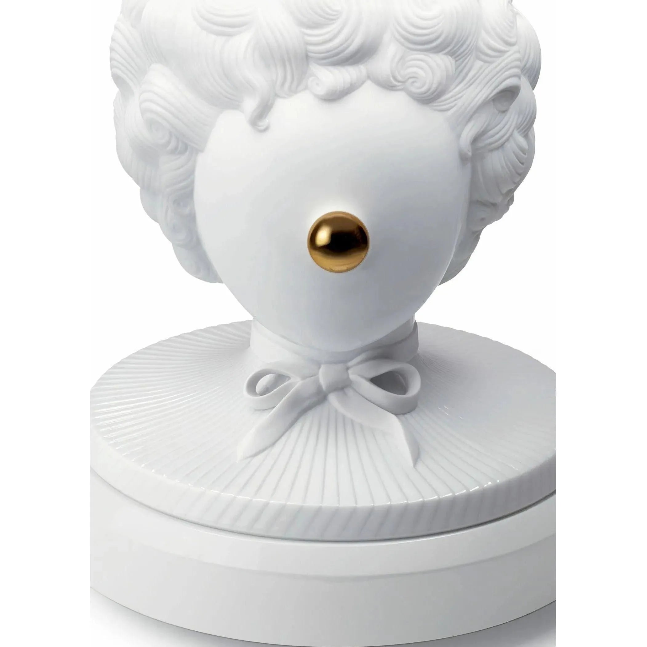 Table lamp designed by Jaime Hayon in white glossy porcelain with modern design and golden sheen on the nose, where you can find the switch that regulates the intensity of light.