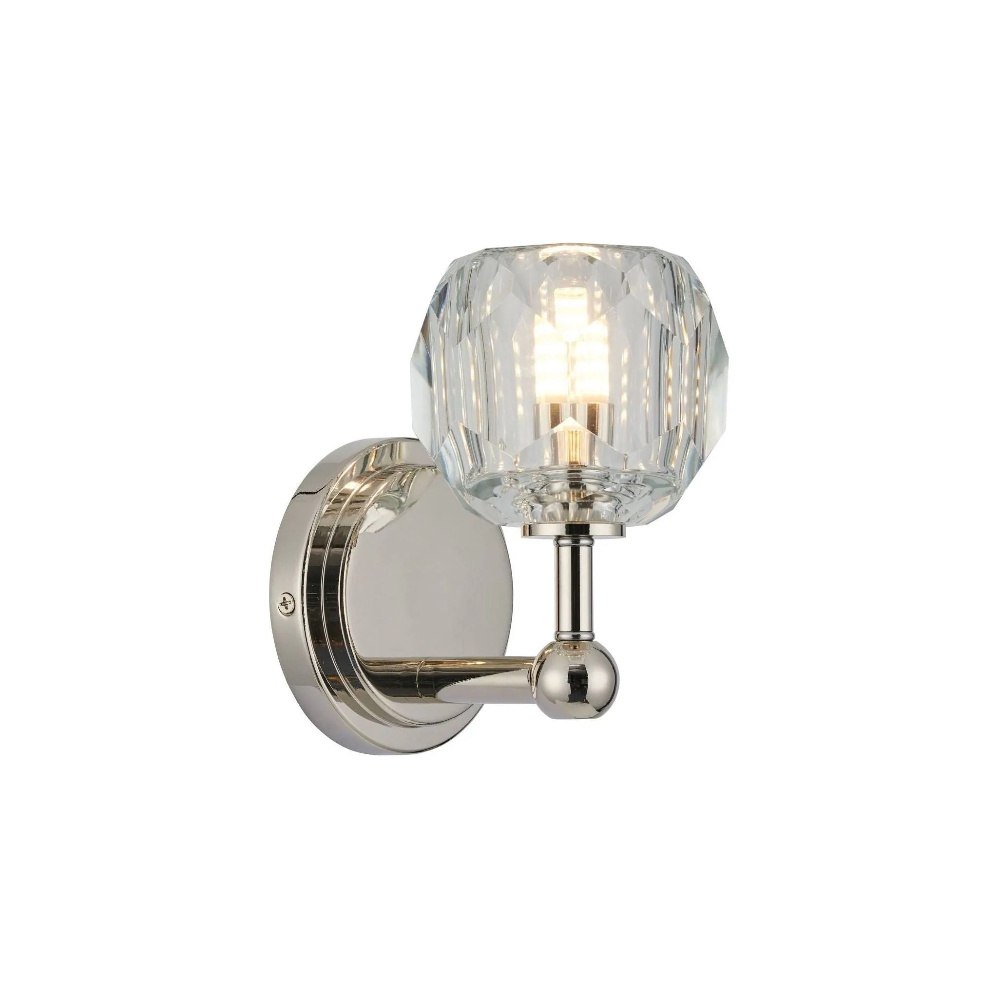 Aluce 3601 Bath Vanity brings sculptural clarity to bathrooms — a refined wall-mounted fixture that pairs a faceted clear glass shade with a compact metal arm for precise, decorative illumination. Designed for designers and architects who prize form and function, it delivers focused task light with a luxury décor presence.
