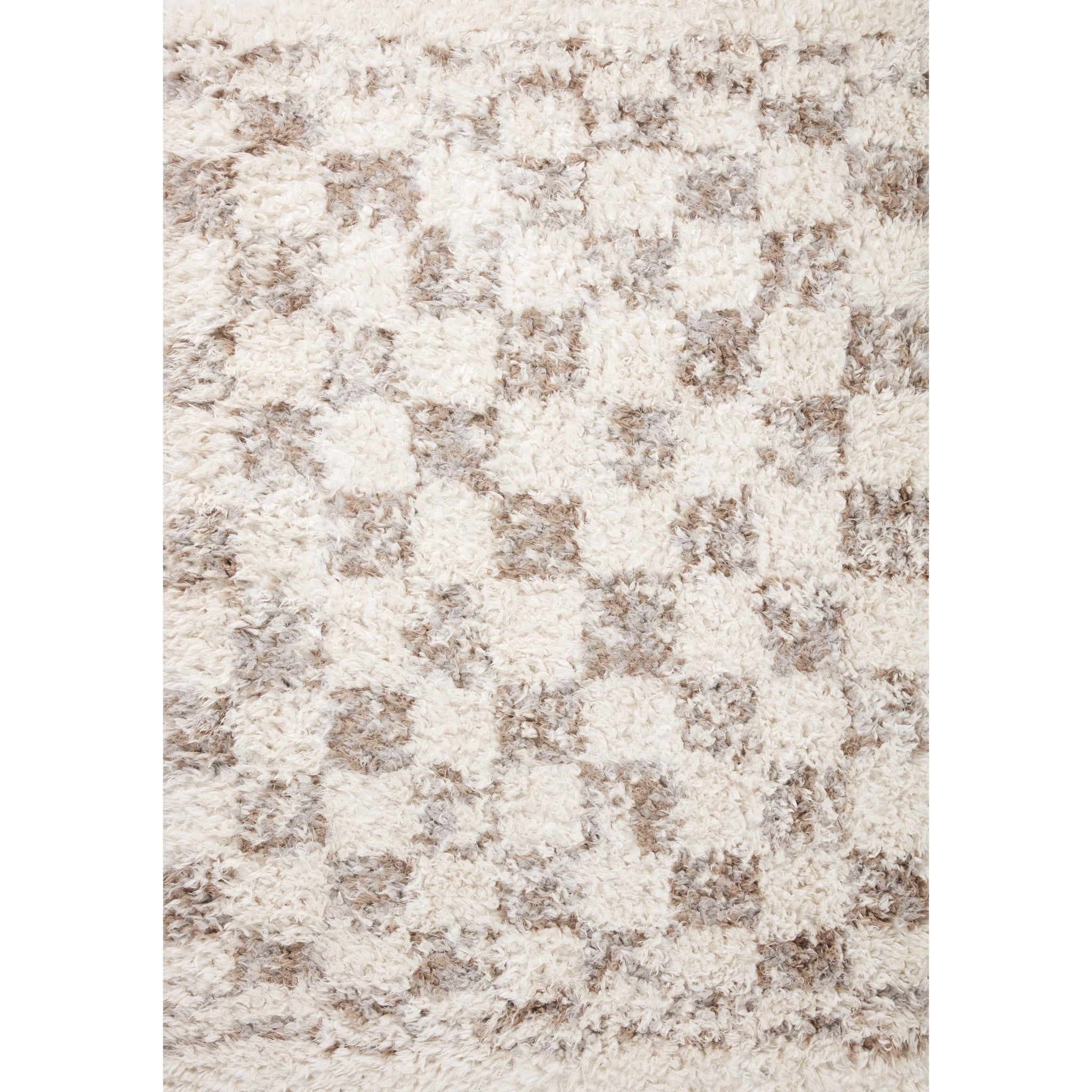 Amira Ami 05 Ivory Pebble area rug from the luxurious Amira Collection by Angela Rose x Loloi. This Moroccan-inspired rug features modern geometric patterns such as checkerboard and windowpane in versatile neutral tones, creating an inviting atmosphere in any living space.