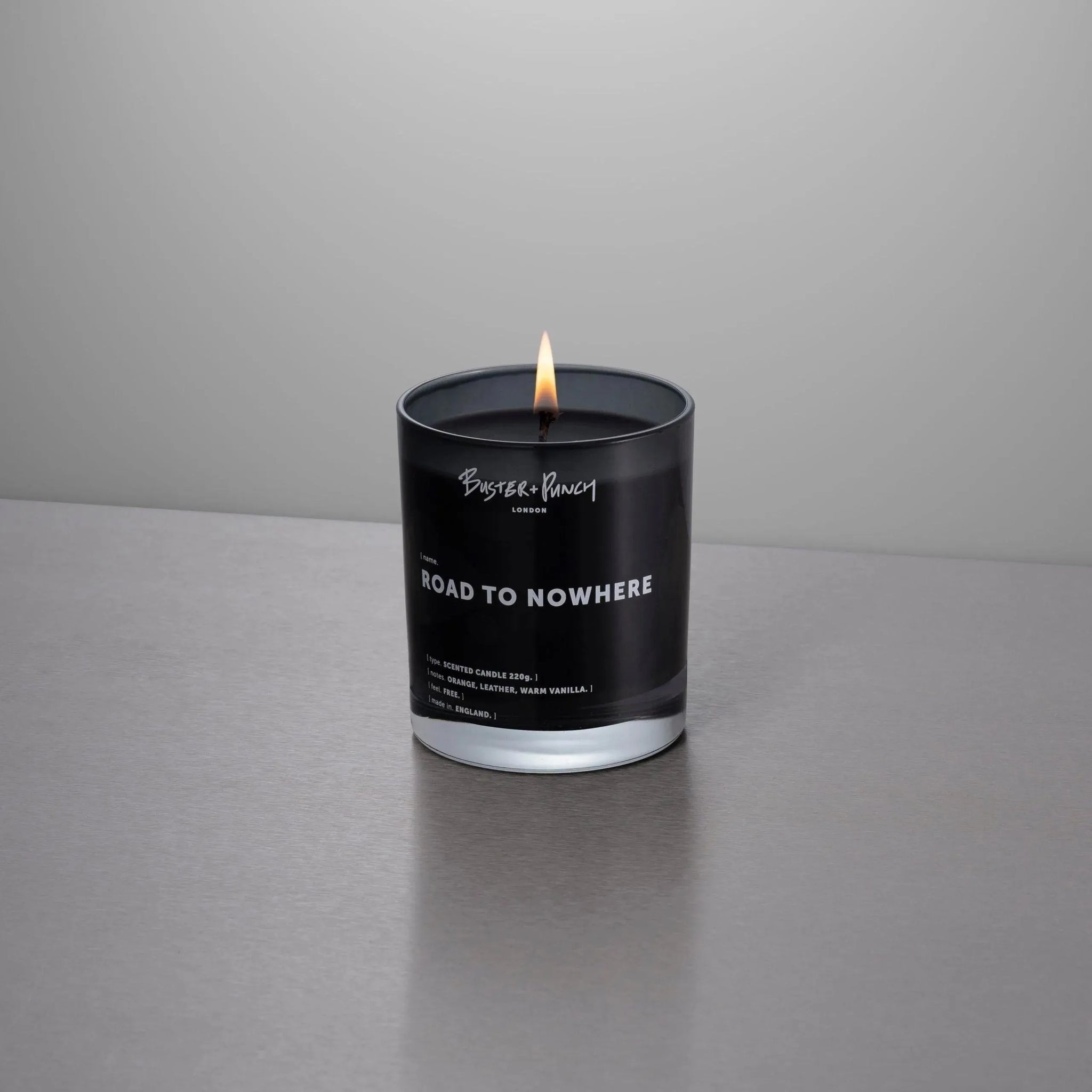A luxury scented candle, made from black wax using our custom handcrafted fragrance, in a reusable smoked grey glass. Notes of orange, leather and warm vanilla help you escape from it all.