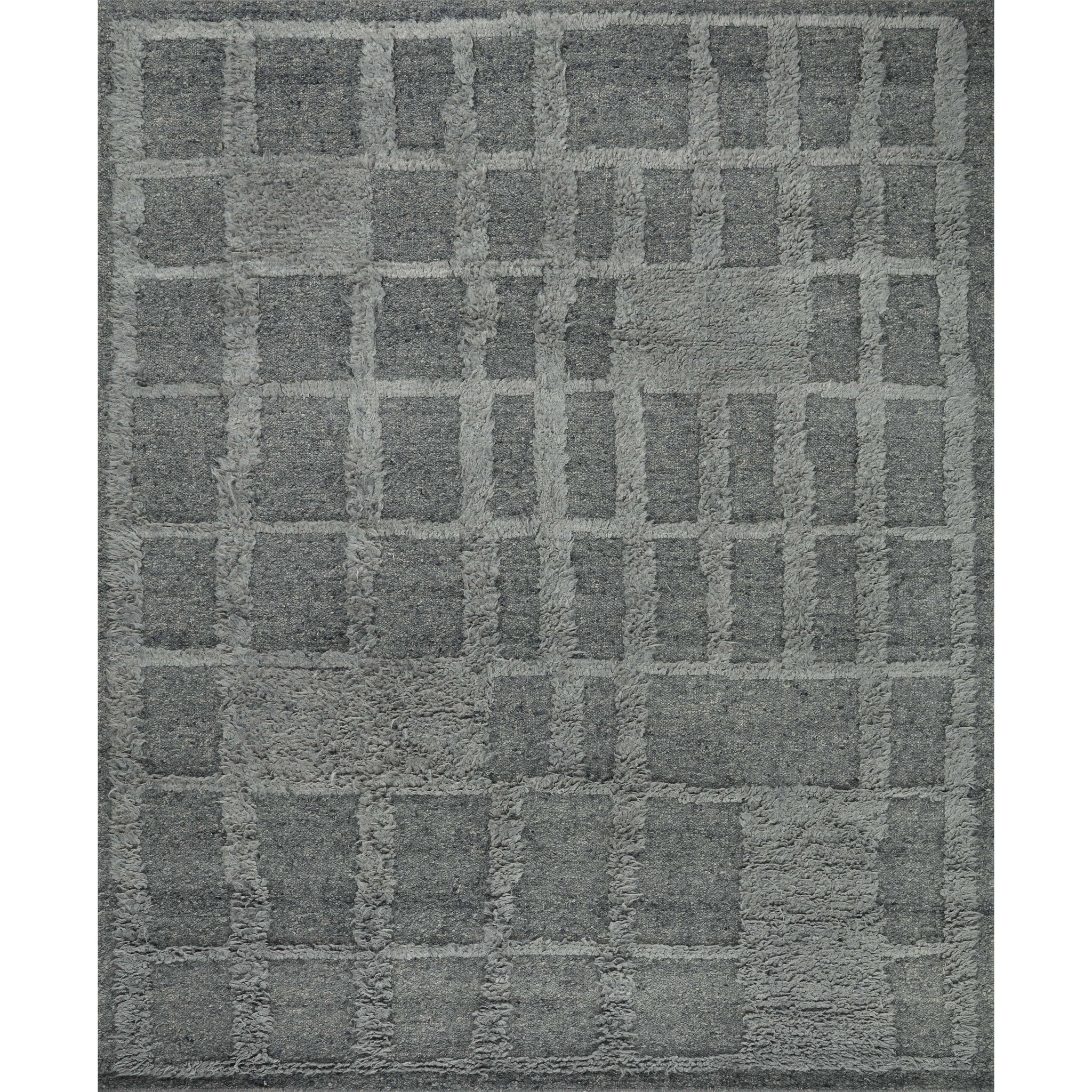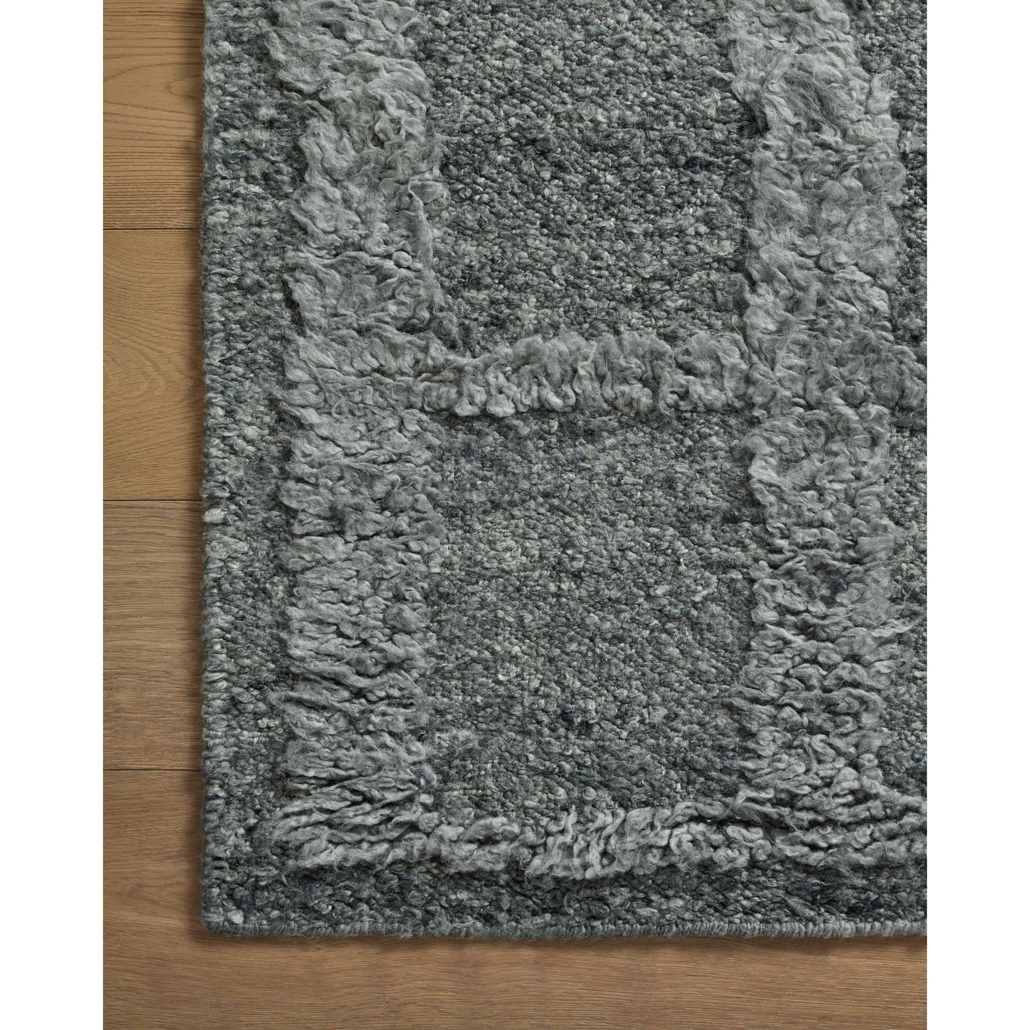 Cassian Cai 01 Denim, a stunning addition to any room. Crafted with a blend of wool and cotton, this hand-woven area rug features an eye-catching asymmetrical gridded pattern and a luxurious high-low texture. Inspired by Moroccan influences, its shaggy pile adds depth and warmth to your space. The neutral colors and natural materials make it a perfect fit for cozy living rooms or dens.