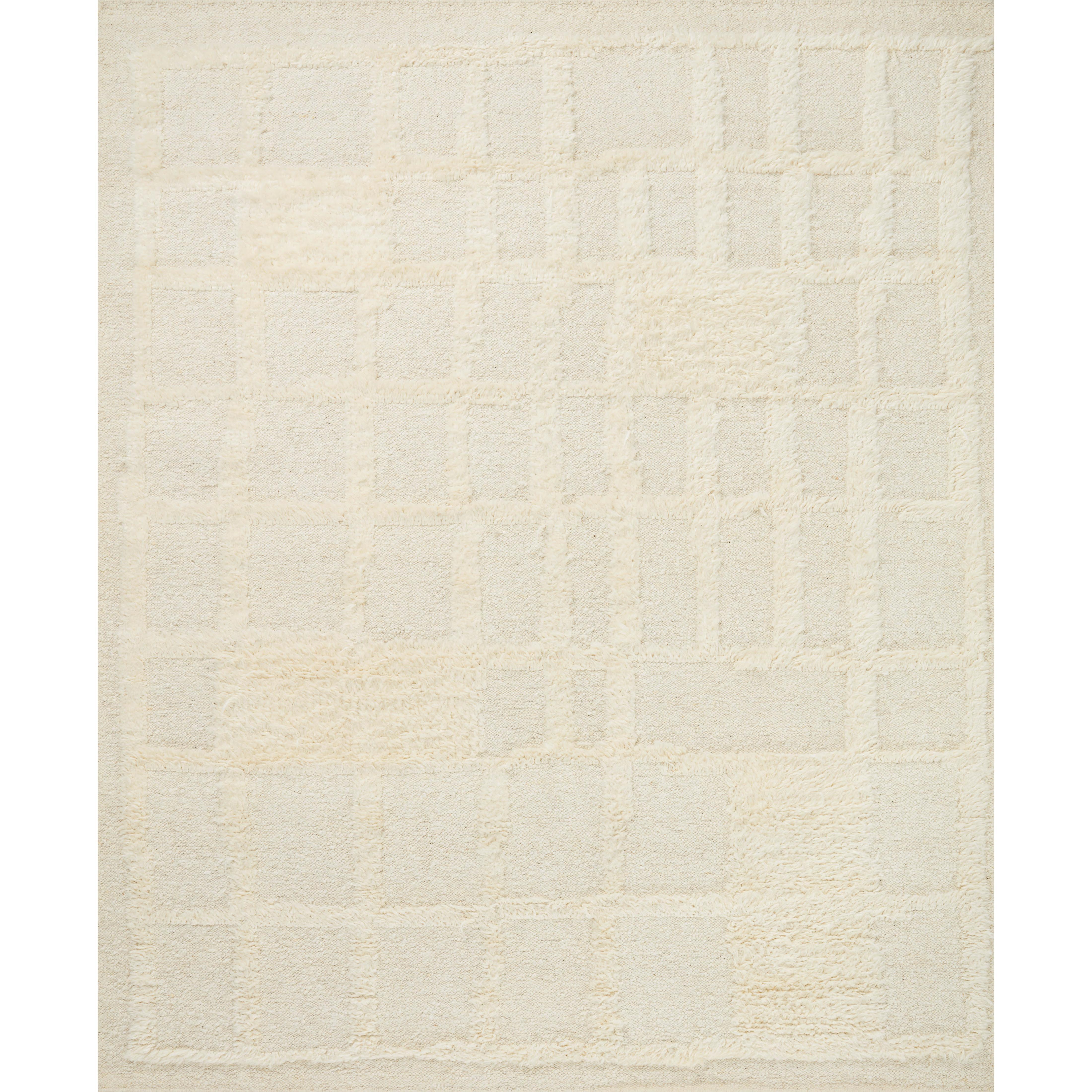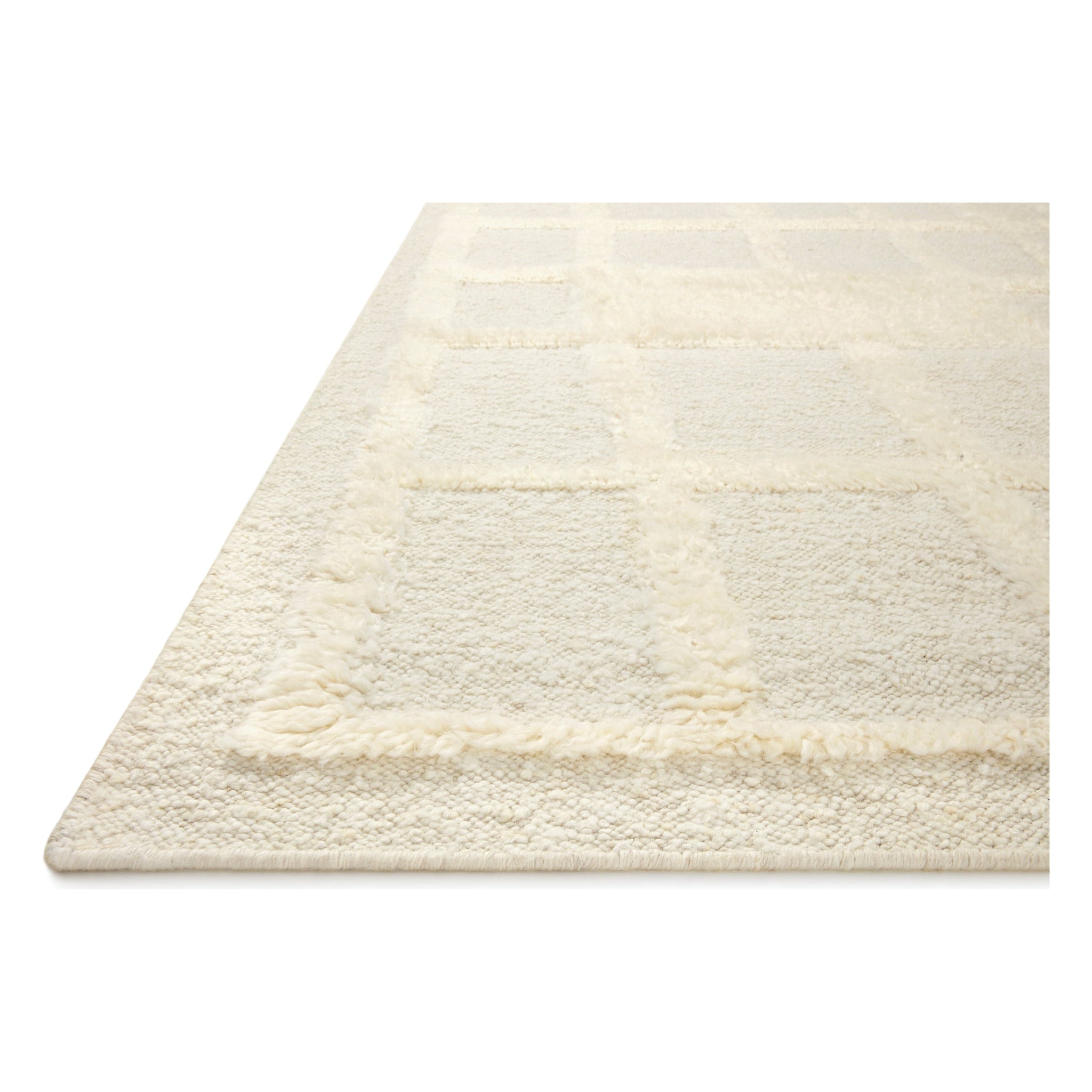 Cassian Cai 01 Ivory, a stunning addition to the Cassian Collection. Hand-woven with a blend of wool and cotton, this area rug features an asymmetrical gridded pattern and high-low texture for a unique look. The shaggy pile draws inspiration from Moroccan designs, while the neutral colors and natural materials create a cozy ambiance in any room, perfect for living rooms or dens. Crafted in India and GoodWeave certified, this rug reflects our dedication to ethical production practices and supporting weavers' communities. Elevate your space with the timeless charm of the Cassian Cai 01 Ivory rug today!