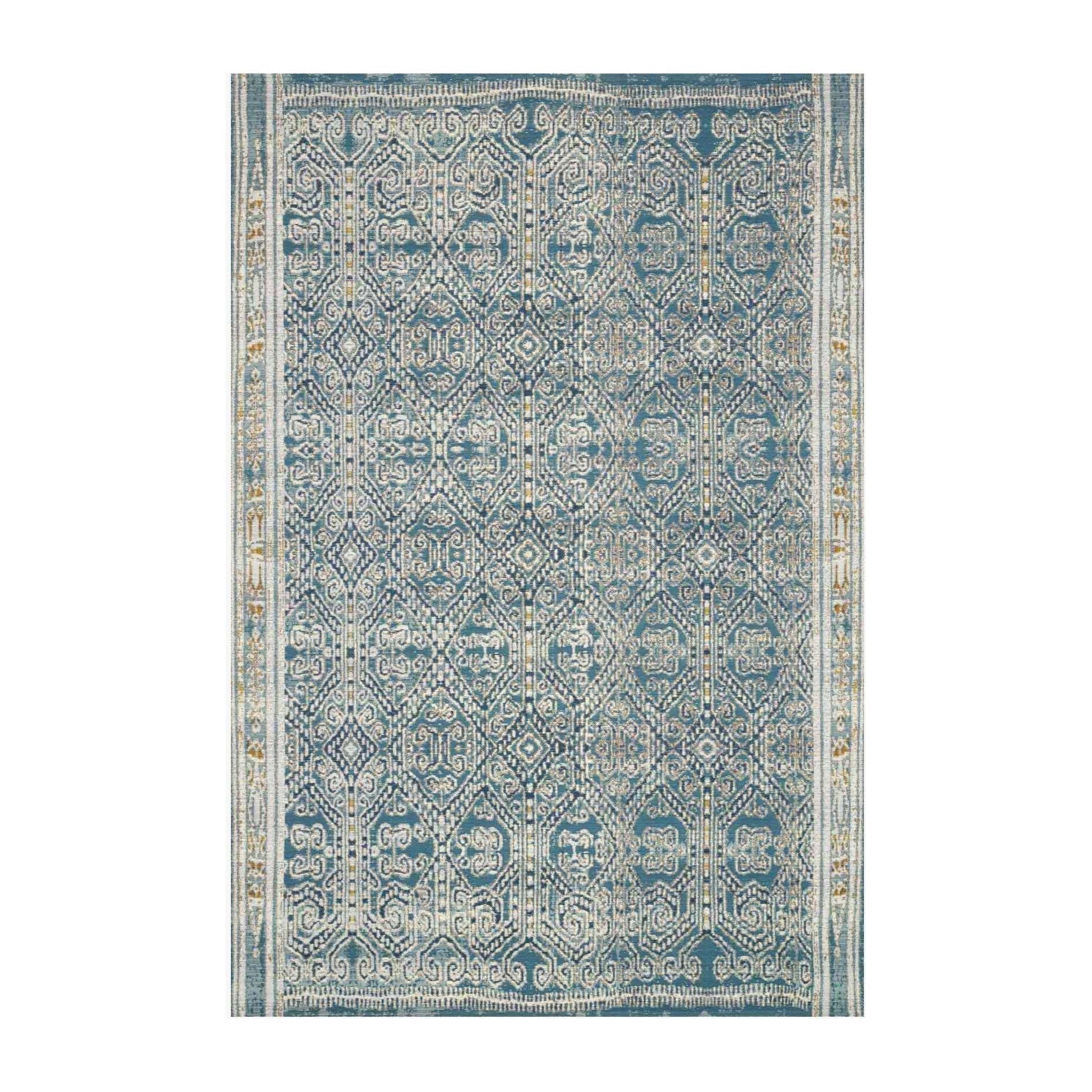 Mika Mik 05 Ocean rug, a stunning addition to your home decor. Crafted in Egypt using a blend of polyester and polypropylene, this rug from the Mika Collection showcases captivating abstract and tribal-inspired designs. The power-loomed construction ensures durability, while the textured yarn enhances its visual appeal with dimension. Each rug is meticulously accented with a stylish blanket stitch finish for added charm.
