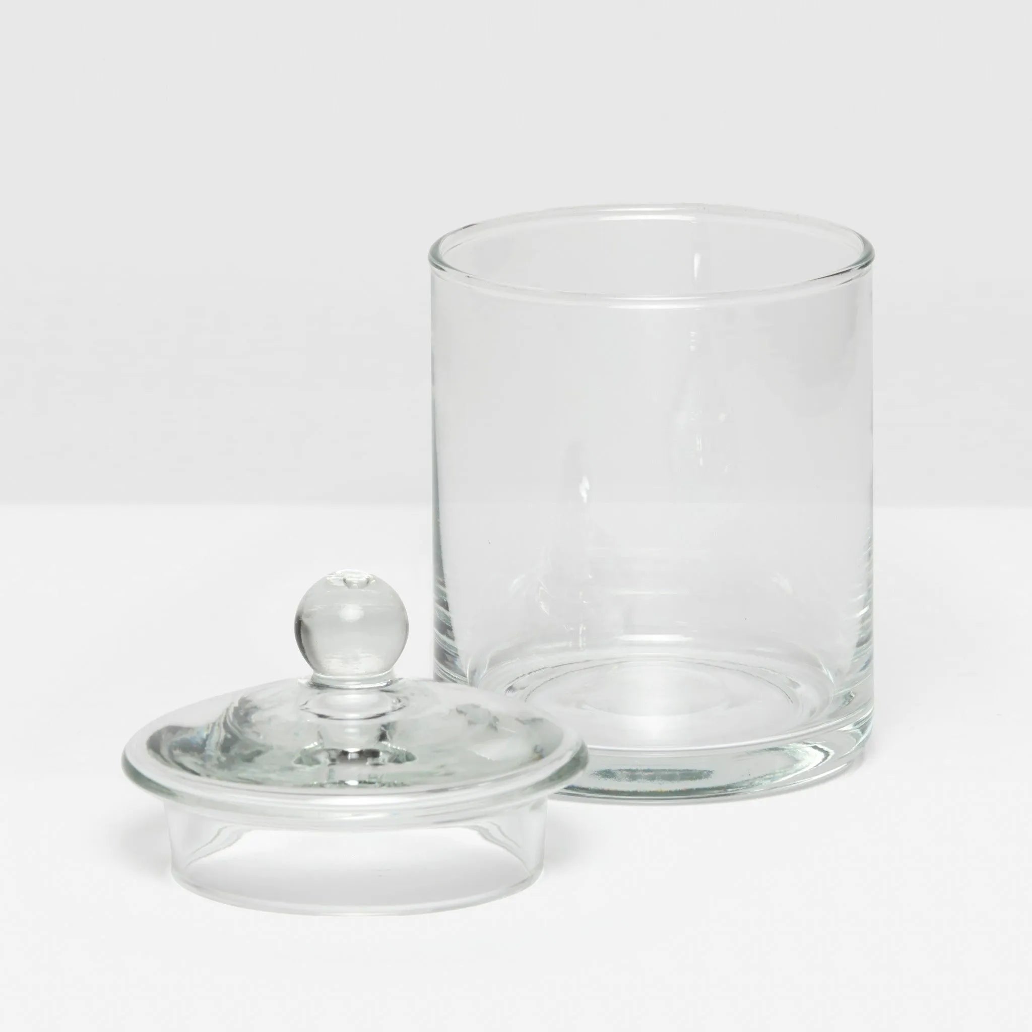 The Darby's simplicity is deceptive-we've considered every detail of this versatile glass container. Its classic silhouette is lightweight for ease of use, and best of all, it comes in three sizes that satisfy all storage needs, perfect for holding and displaying cotton balls, bath bombs, soaps, Q-tips, and more.