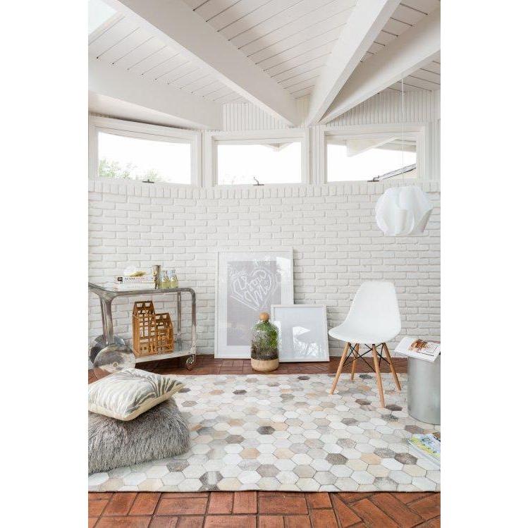Promenade Po 02 Grey, a stylish rug handcrafted in India from 100% genuine cowhide. This modern take on the classic cowhide rug features a variety of eye-catching patterns, blending light and dark hides for a striking contrast. Perfect for high-traffic areas, the durable cowhide fiber used in the Promenade collection ensures longevity and easy maintenance.