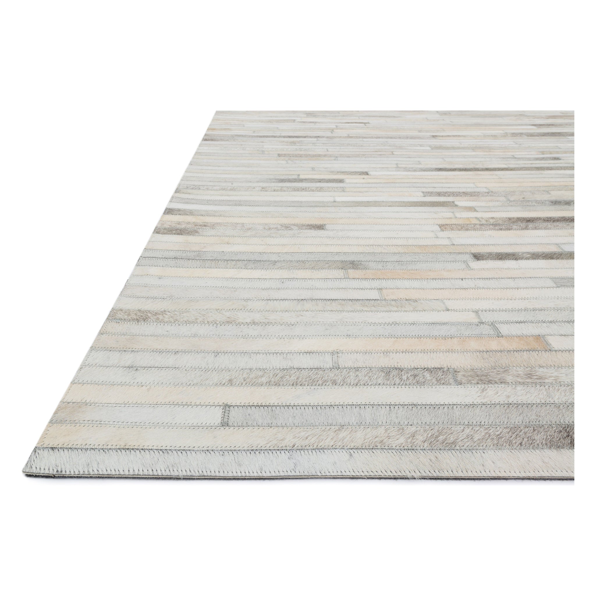 exquisite Promenade Po 03 Ivory rug, meticulously hand-stitched in India using 100% genuine cowhide. This contemporary piece puts a modern twist on the classic cowhide rug, featuring striking patterns that play with light and dark contrasts. Perfect for high-traffic areas, the durable cowhide fiber ensures longevity and practicality.