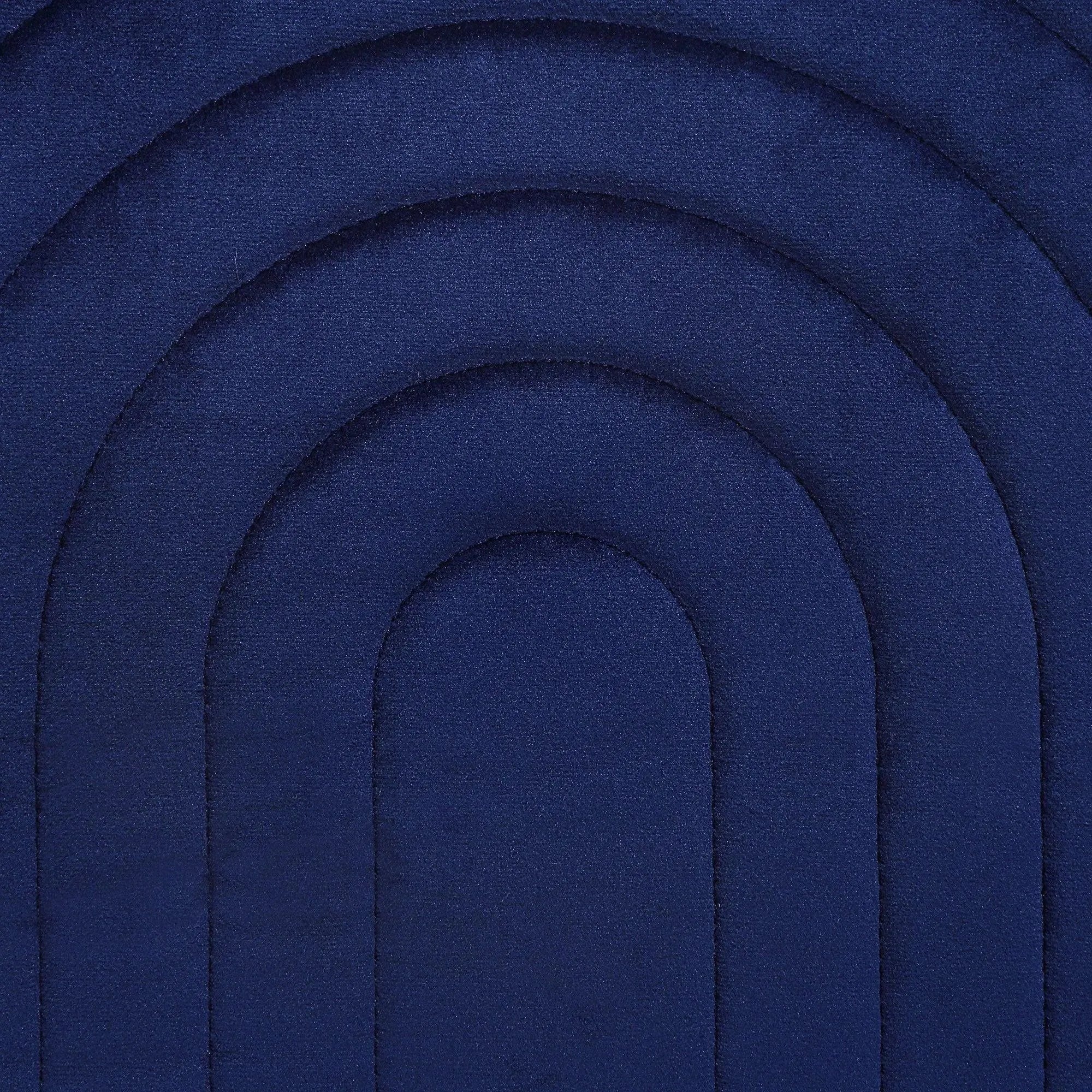 A royal blue palette sets an inviting tone for the living room or bedroom this design sits within. Whether your client is styling a hotel or home interior of a traditional, contemporary or mid-century modern style, this poly-velvet pillow will assimilate into the aesthetic without the need for embellishment. An arch design stitched into its surface brings a playful quality to this polished throw pillow – and to its space overall.