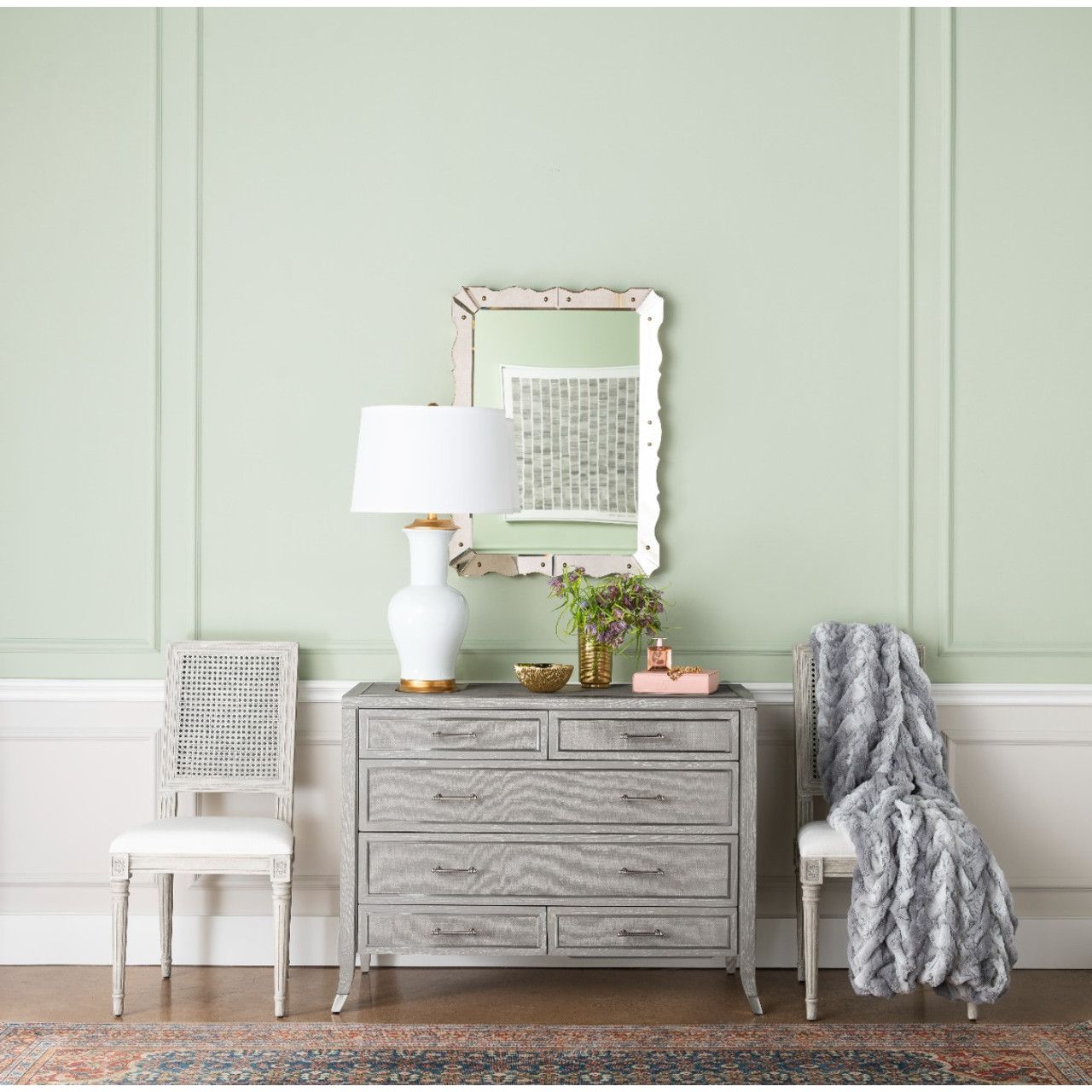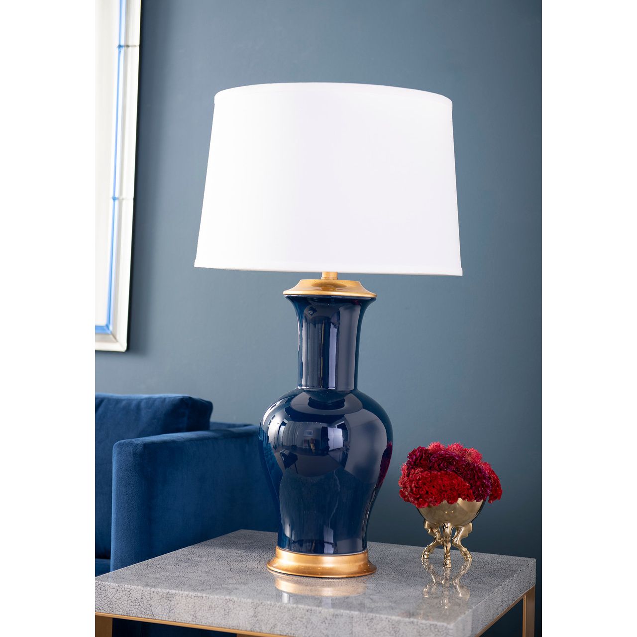 Both functional and decorative, the Acacia Lamp achieves the effect of a worldly piece of pottery, recalling the classic Greek amphora, while bringing light to a living room or bedroom. It’s crafted in glazed porcelain with a high-gloss finish, allowing its soft light blue to truly shine, especially when contrasted with its accents of gold leaf on the base and finial. This lamp is topped with a crisp white laminated linen shade, accented with brass hardware.
