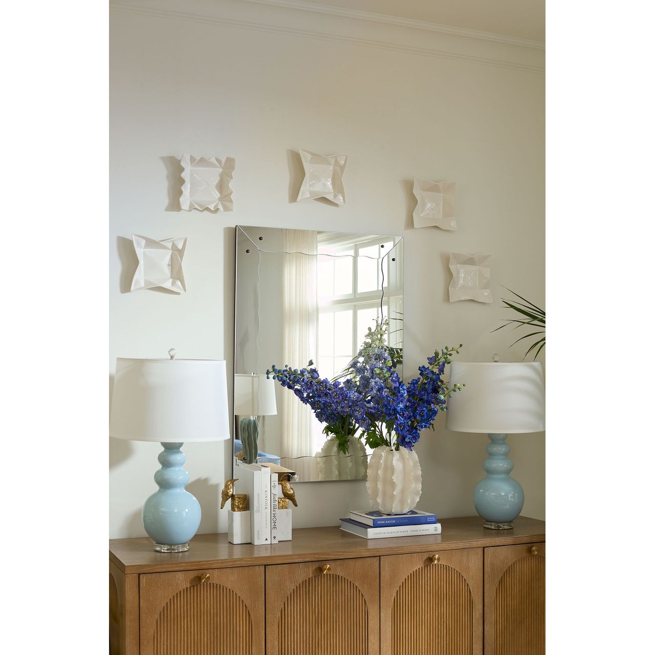The romantic nature of the Spring Flower Vases invites you to display beautiful floral arrangements on any surface of your home. Delicate rippling petals, which resemble the natural folds of a Damask Rose, surround the outer surface of each vase to add intricate movement to its form. The Matte Glazed Blanc de Chine finish adds a soft touch of elegance. Offered in two sizes, they can be used individually or paired together for a graceful decorative display.