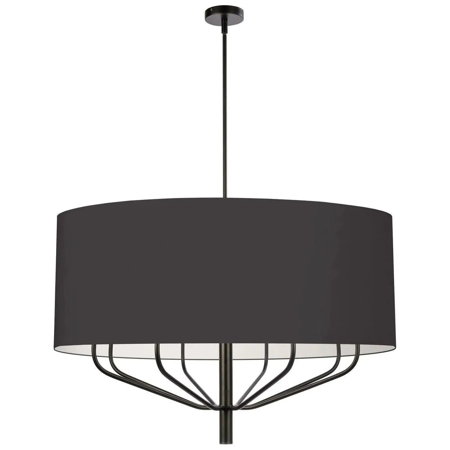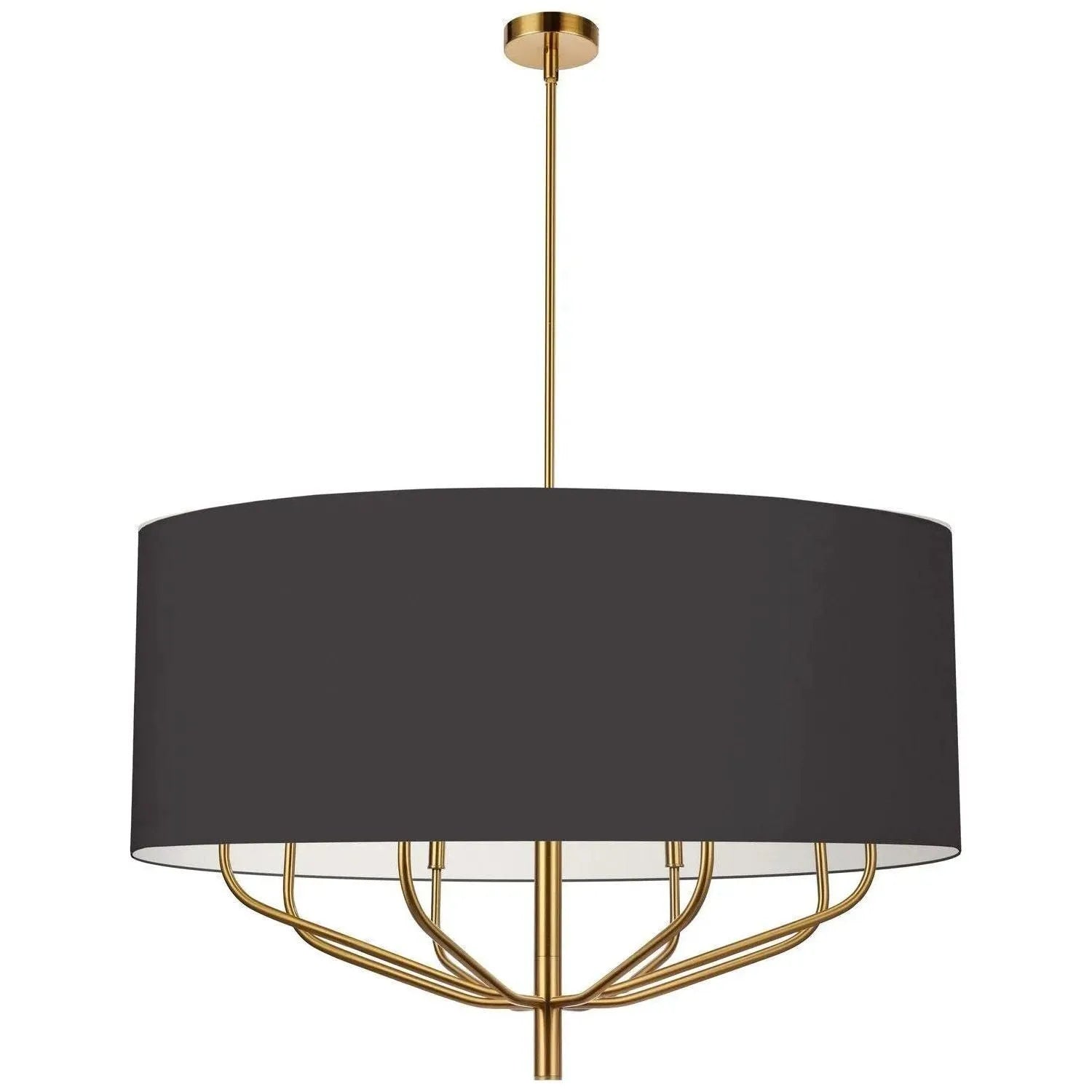 Dainolite Eleanor Shade Chandelier — a studied balance of form and function that defines contemporary designer lighting. A clean white drum shade softly diffuses light while a sculptural arrangement of slender brass arms and a minimal stem deliver a refined, modern silhouette for elevated interiors.