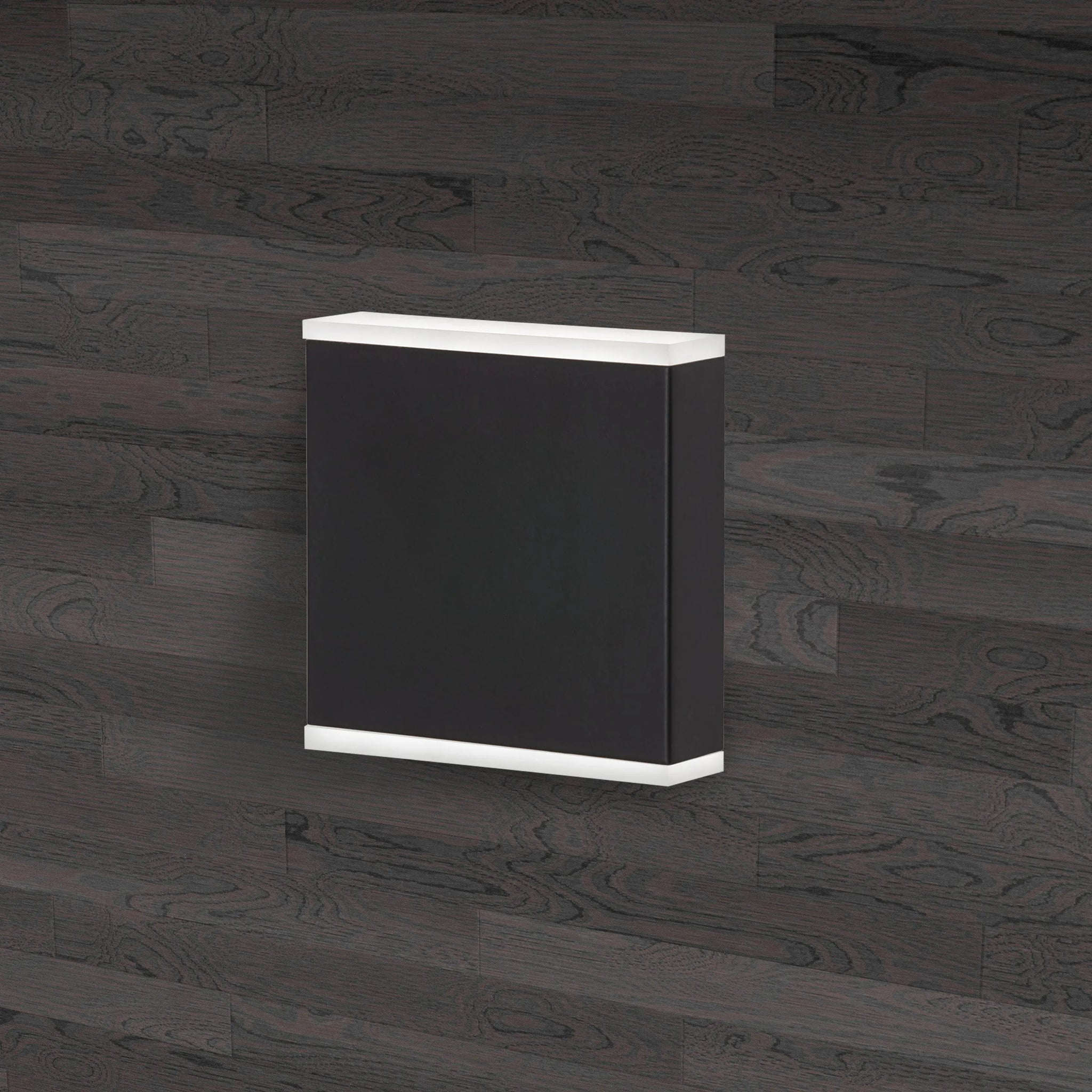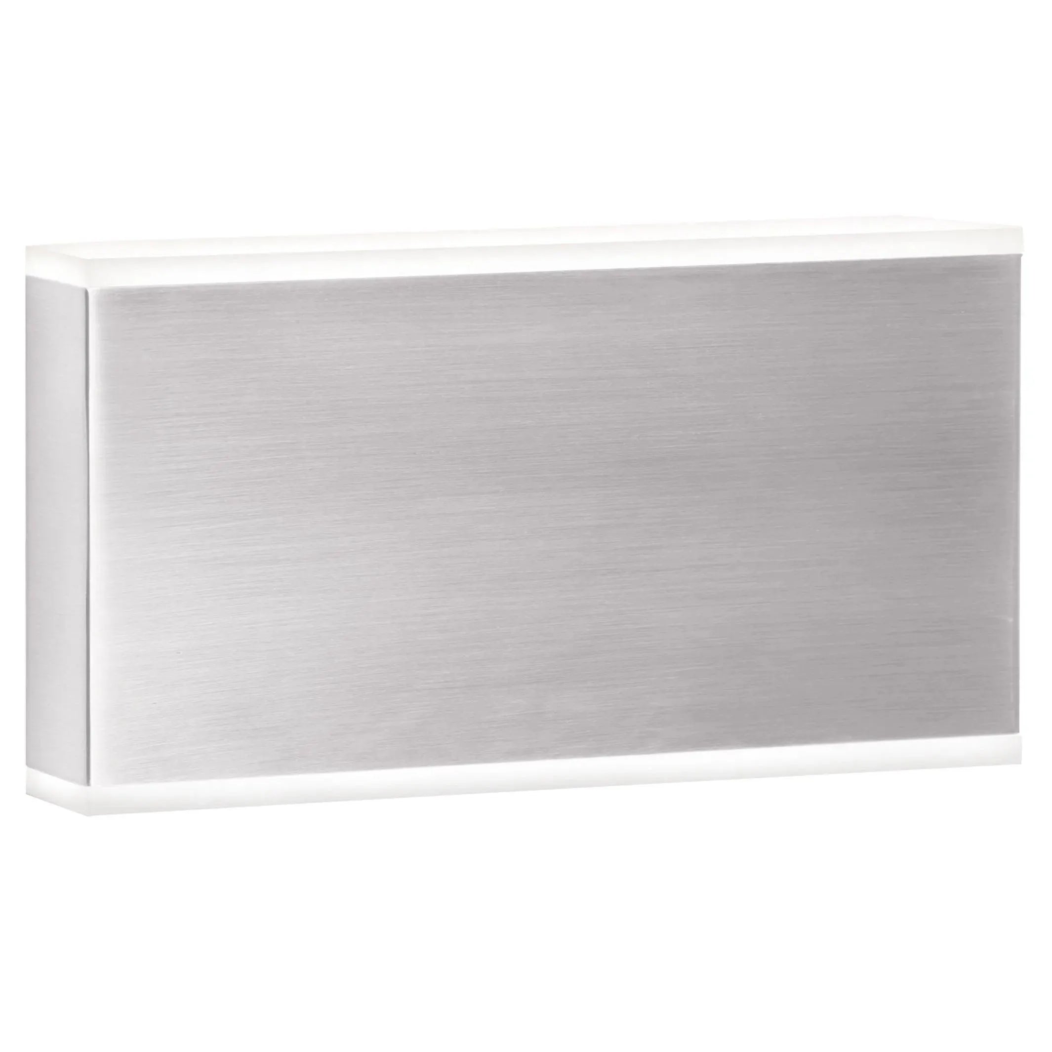 Emery LED Wall Sconce by Dainolite — a pared-back rectangular form that balances refined materials with purposeful illumination. The brushed metal face reads as modern hardware; thin opal diffusers at the top and bottom deliver even, glare‑controlled LED light for a calm, architectural glow.