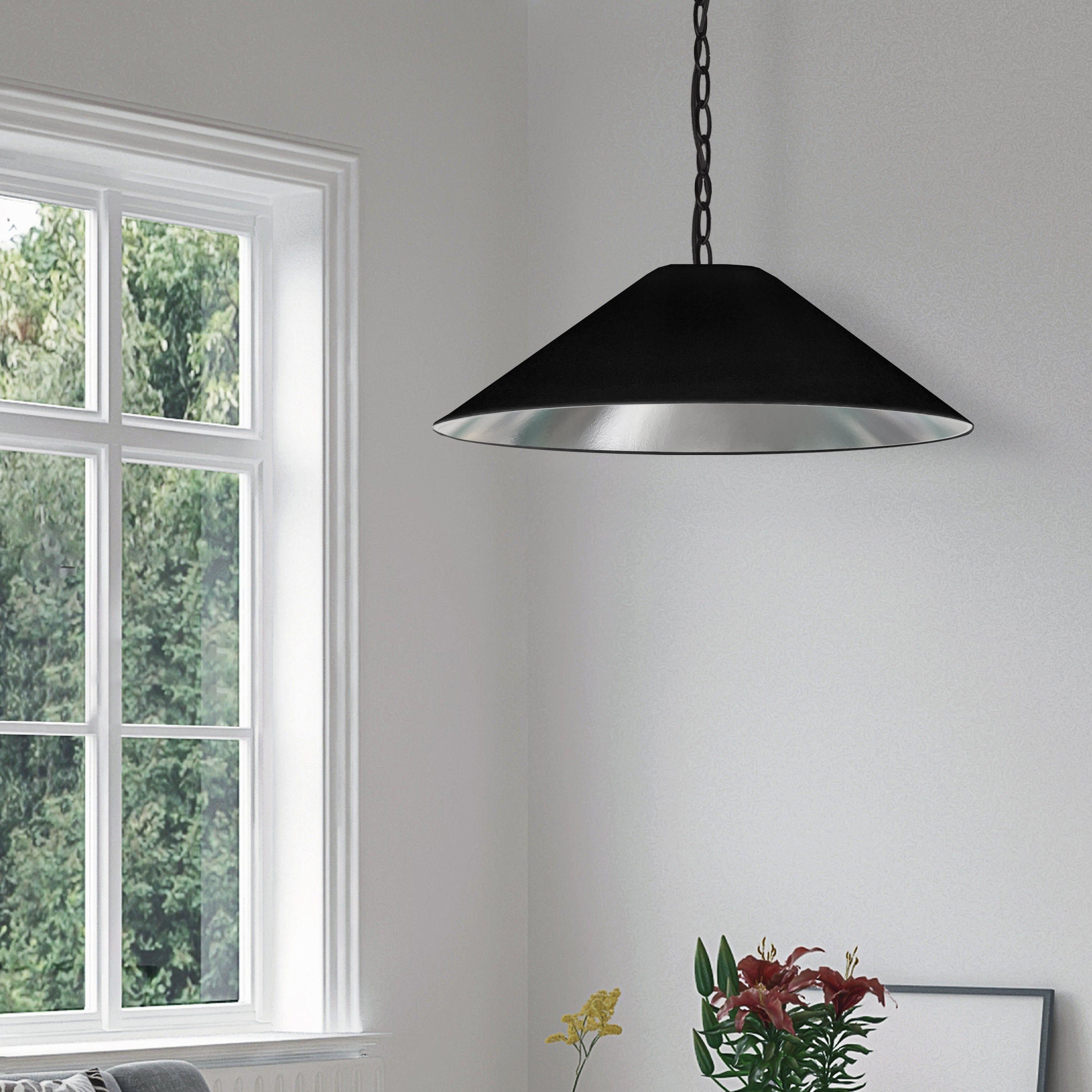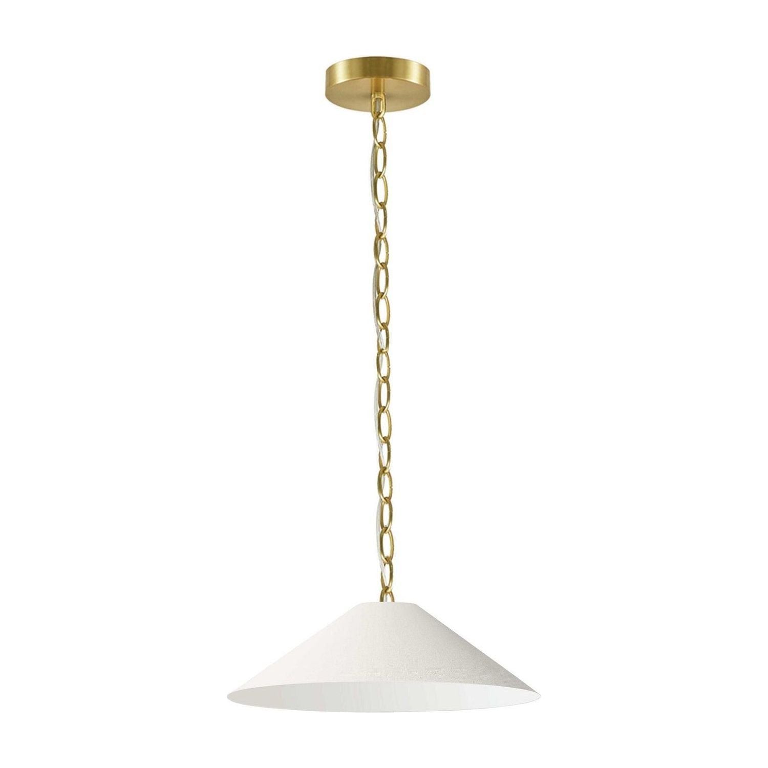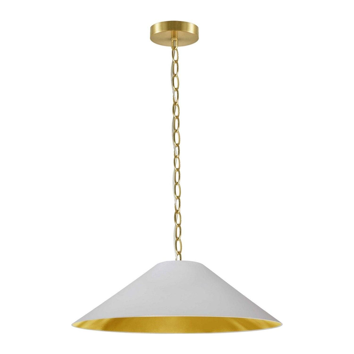 Presley Pendant by Dainolite — a refined pendant that balances sculptural form with functional illumination. Its wide, low-profile conical shade and slender chain deliver a clean, contemporary silhouette that anchors dining areas, kitchen islands, and tailored hospitality spaces.