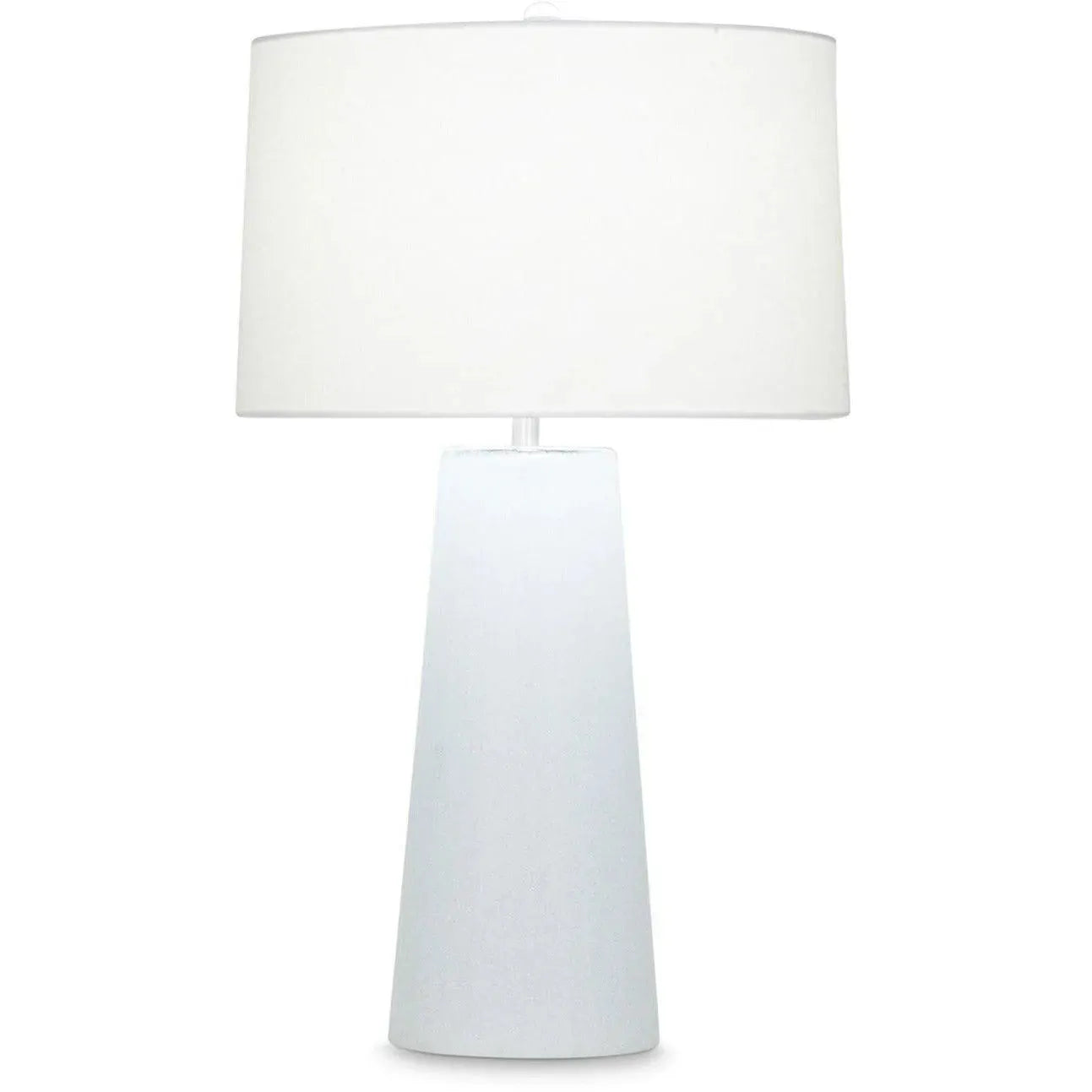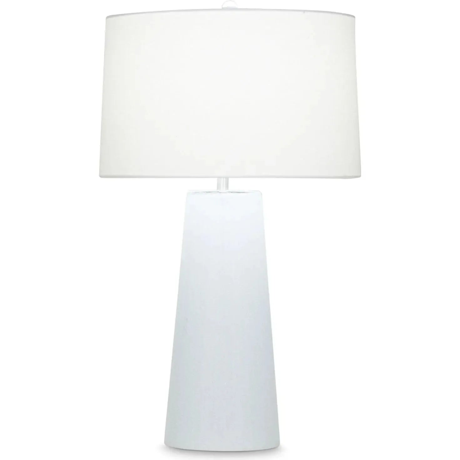 Cool as ice: This table lamp wears a hand-etched ice finish on its mouth-blown glass body and an Off-White cotton up top. This monochromatic look would look chic in a modern living room or bright in a beachy retreat.
