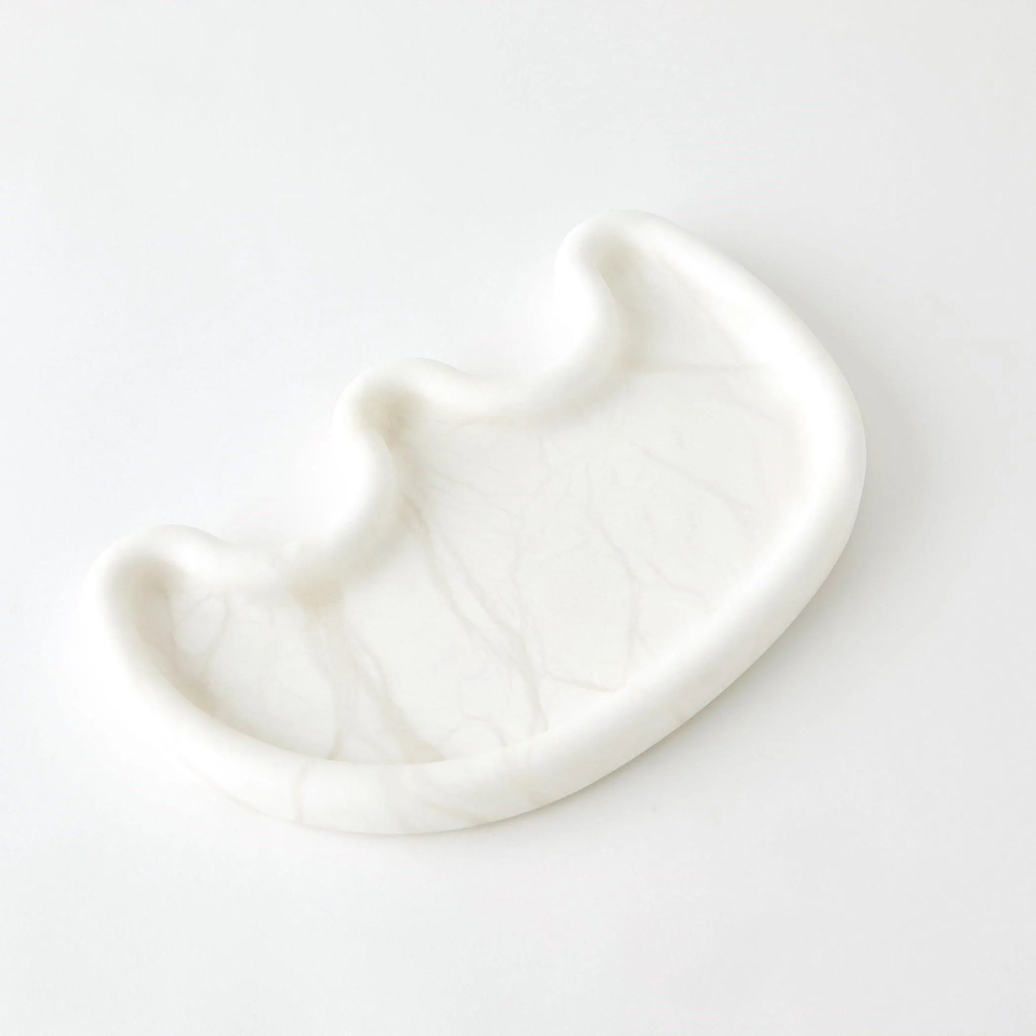 Amera Alabaster Tray — a sculptural tray designed to introduce luminous, natural stone into refined interiors. Hand-carved from Italian alabaster, its sinuous, scalloped rim and subtle veining create a quiet focal point for luxury décor and designer lighting displays.