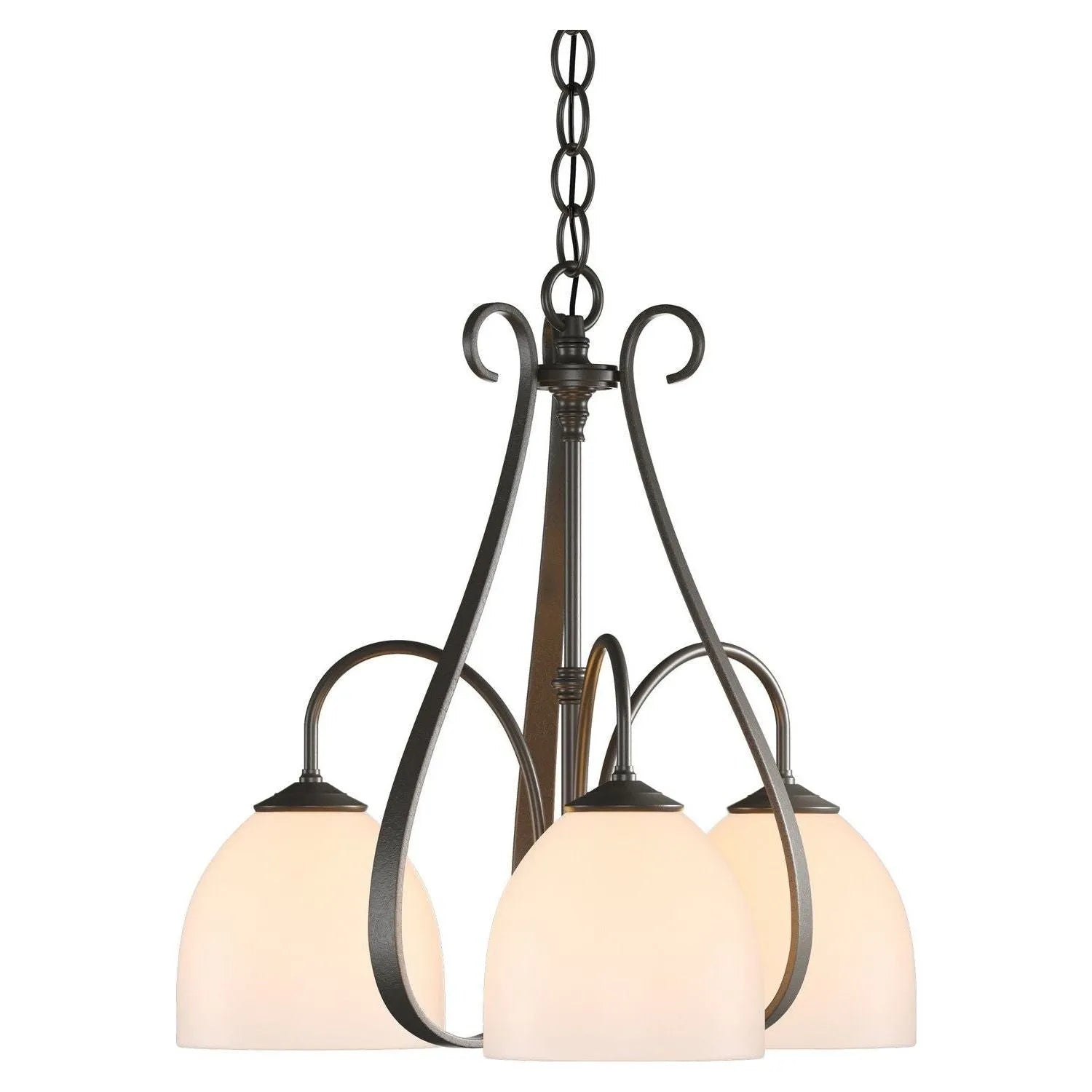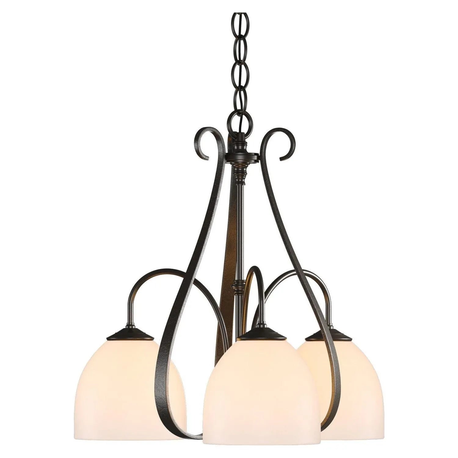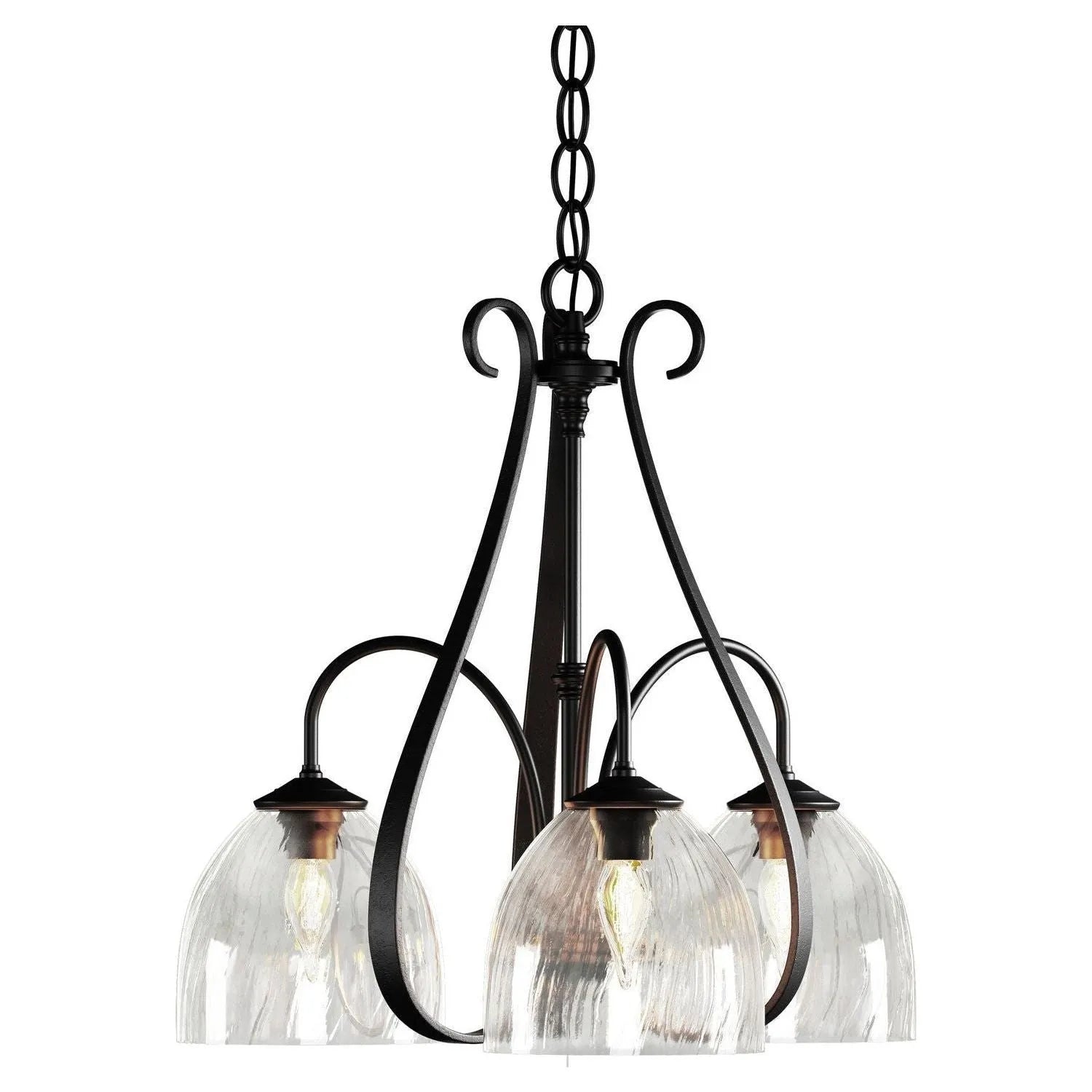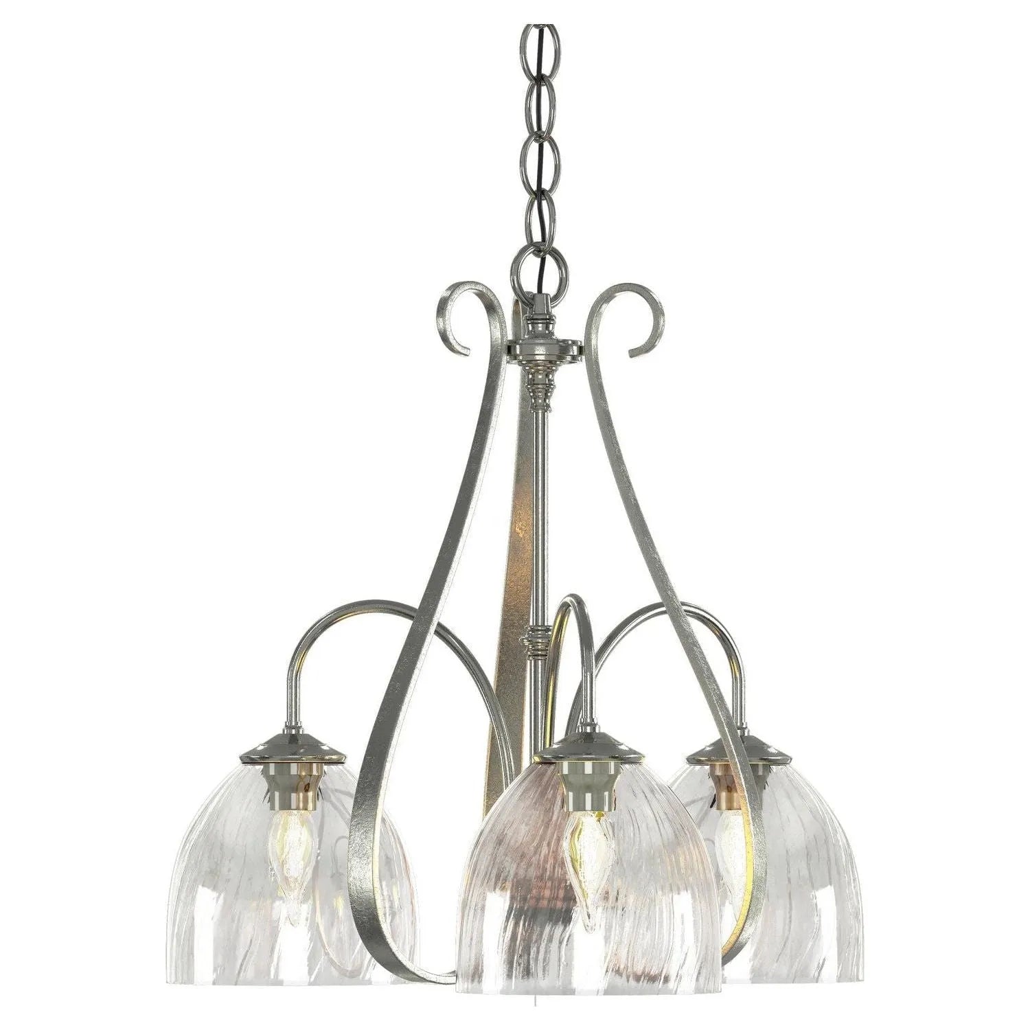 We challenge you to keep your eyes fixed on just one section of this fixture. The hand-shaped steel ribbons and tubes create the visual illusion of movement. Let your eyes follow graceful curves that flow to and from the bell-shaped glass down-lights.