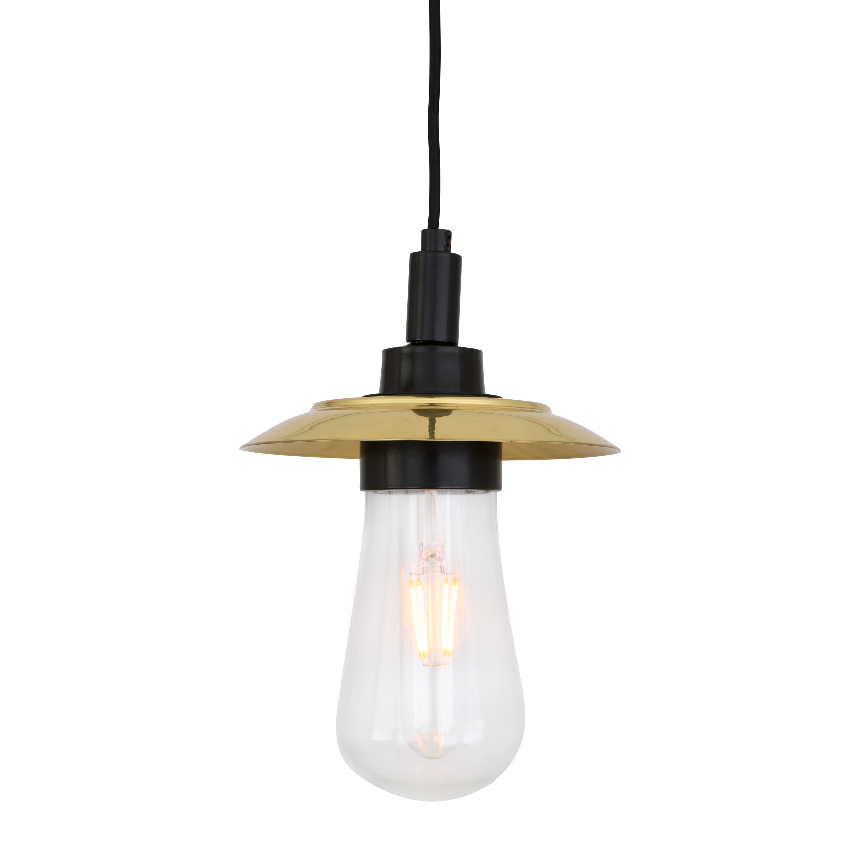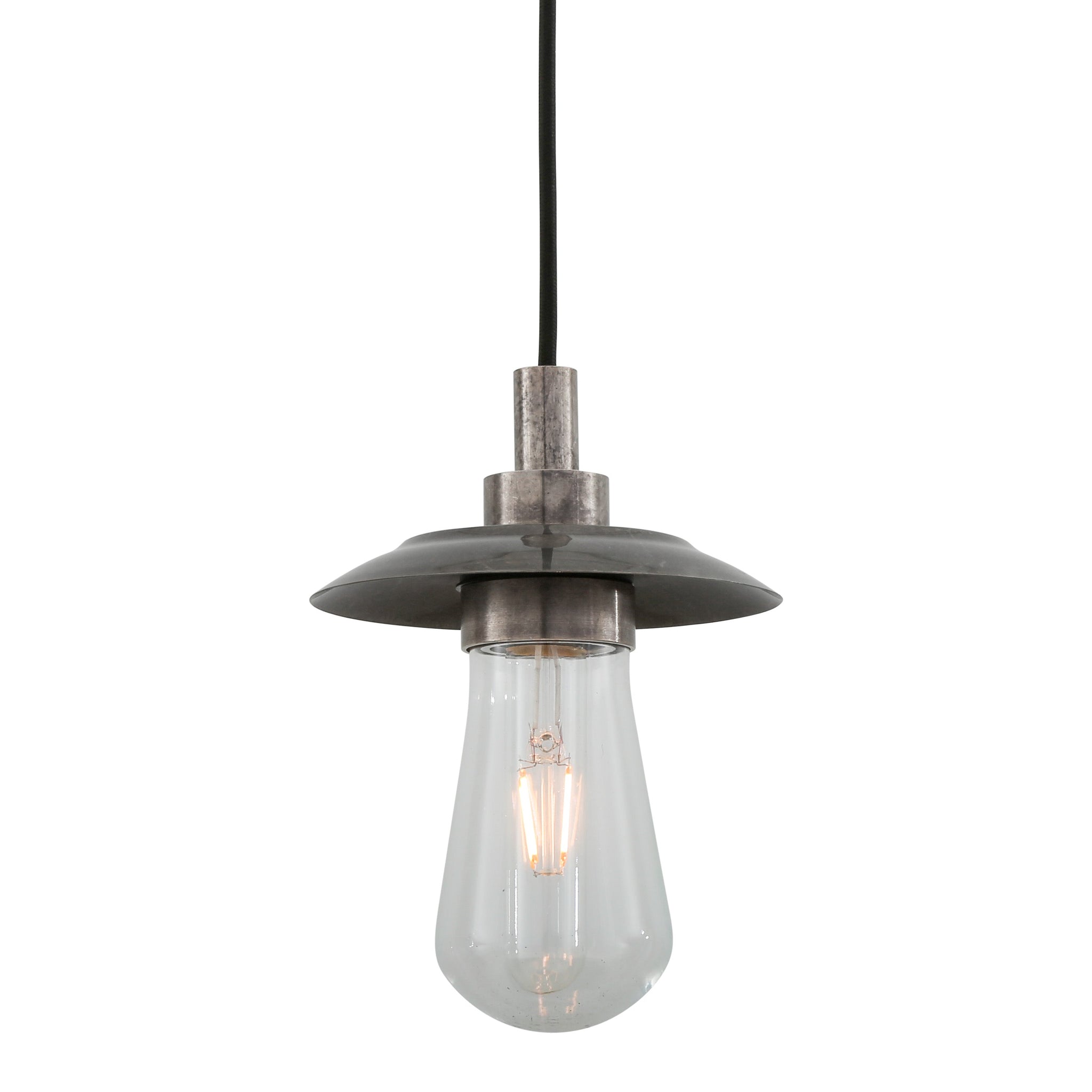 Crafted with attention to finish and proportion, the pendant pairs a brushed metal stem and shallow dish with a clear blown-glass shade that showcases filament lamps and offers crisp downward illumination. Its measured scale and solid construction make it suitable for kitchen islands, layered dining lighting, or corridors where modern hardware must remain unobtrusive.
