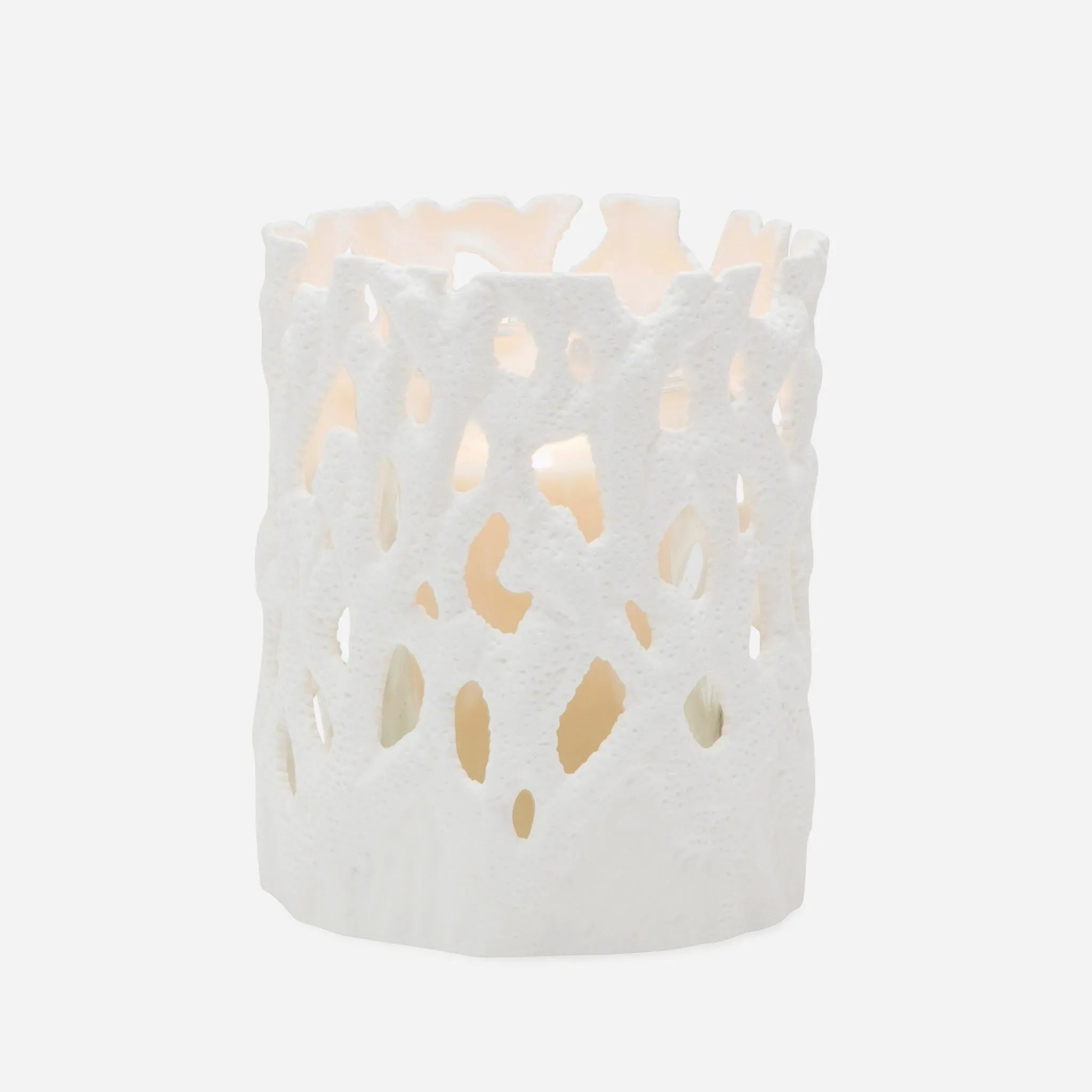 Porcelain hurricanes resemble undersea coral. Glass insert included.