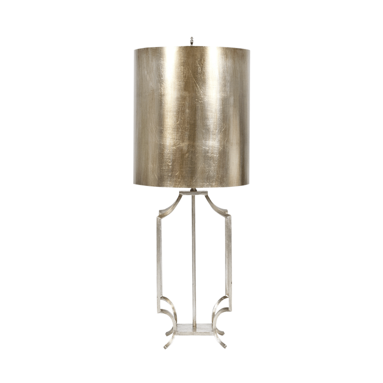 Our Windham table lamp is defined by delicate and refined lines, making it an accessory you'll treasure for generations. Gorgeous in any context, but especially suited to enhance Hollywood Regency and Moderne interiors. Hand applied champagne silver leaf finish with a coordinating champagne silver leaf metal drum shade. Incredibly chic and timeless.