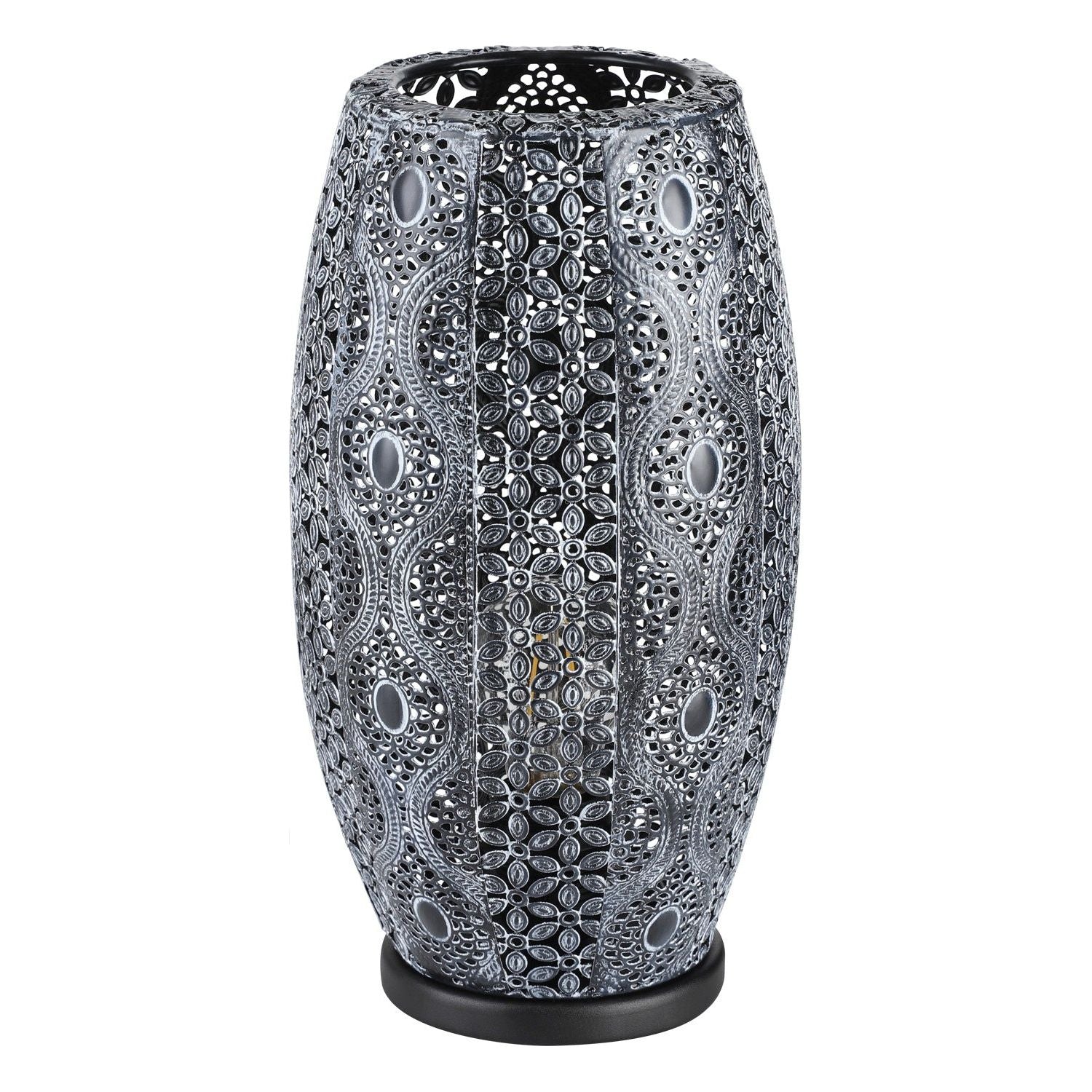 Riyadh Table Lamp by Eglo Lighting is a sculptural accent piece that marries ornamental craft with contemporary restraint. Its tall, tapered silhouette and intricately perforated metal body create a refined wash of patterned light—designed to be both an ambient source and a focal object in curated interiors.