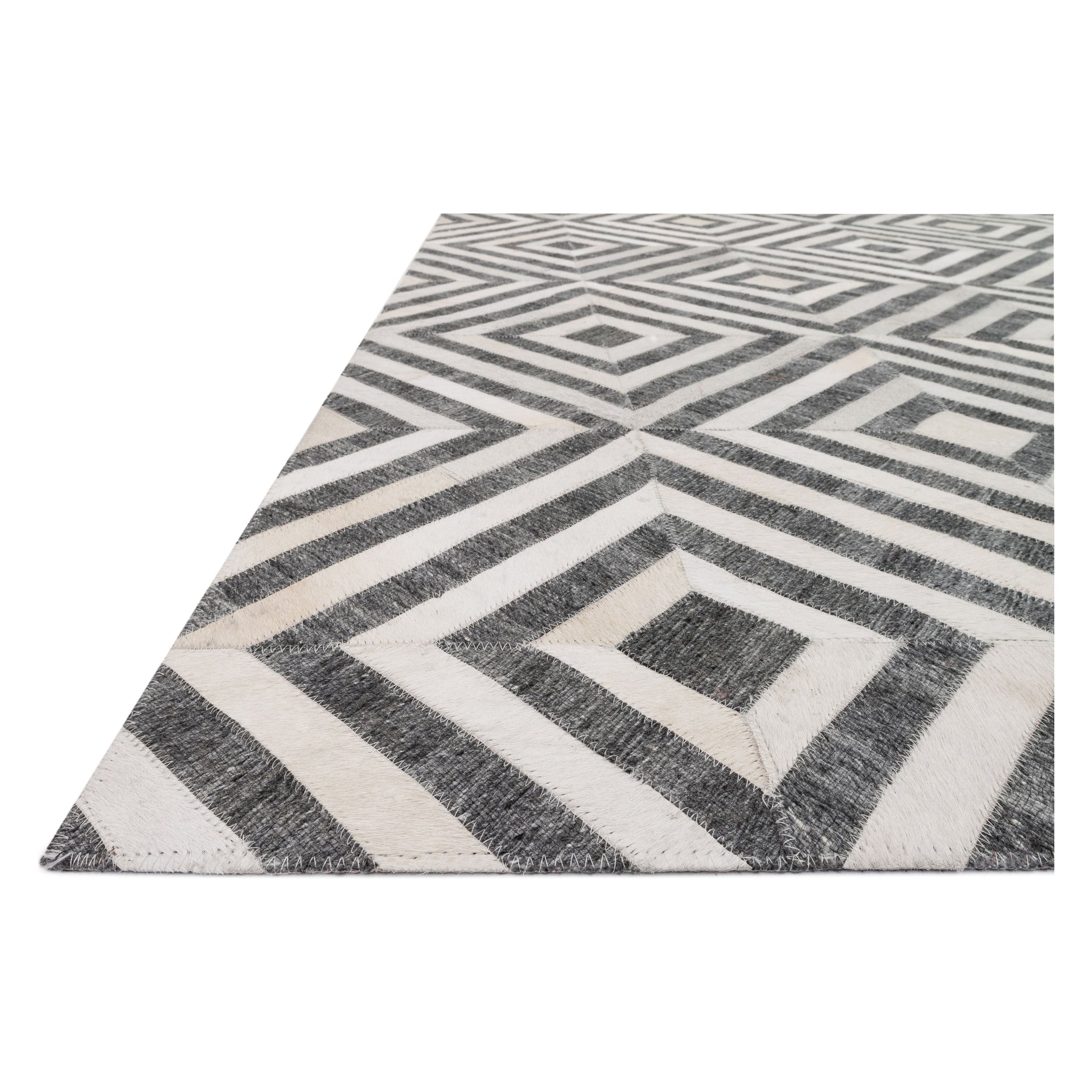 Superbe tapis Dorado DB 03 Anthracite Ivoire de la collection Dorado, fabriqué en Inde. Cette pièce unique allie cuir de vache authentique cousu main et viscose tissée main pour une esthétique saisissante et distinctive. Le mélange de textures et de matières crée un design audacieux et inattendu qui sublimera tout espace.