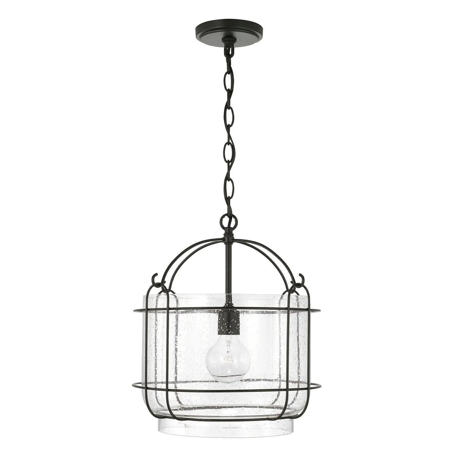 Inspiré d'une lanterne ambulante vintage, le Harmon 1-Light Suspension évoque le charme de la ferme. L'abat-jour en verre grainé complète la finition noir mat classique sur la silhouette de la cage pour un style qui résistera à l'épreuve du temps.