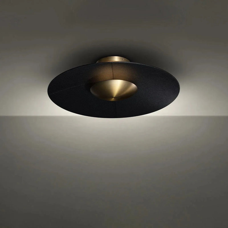 Structure en métal filé avec abat-jour en similicuir et diffuseur en acrylique |