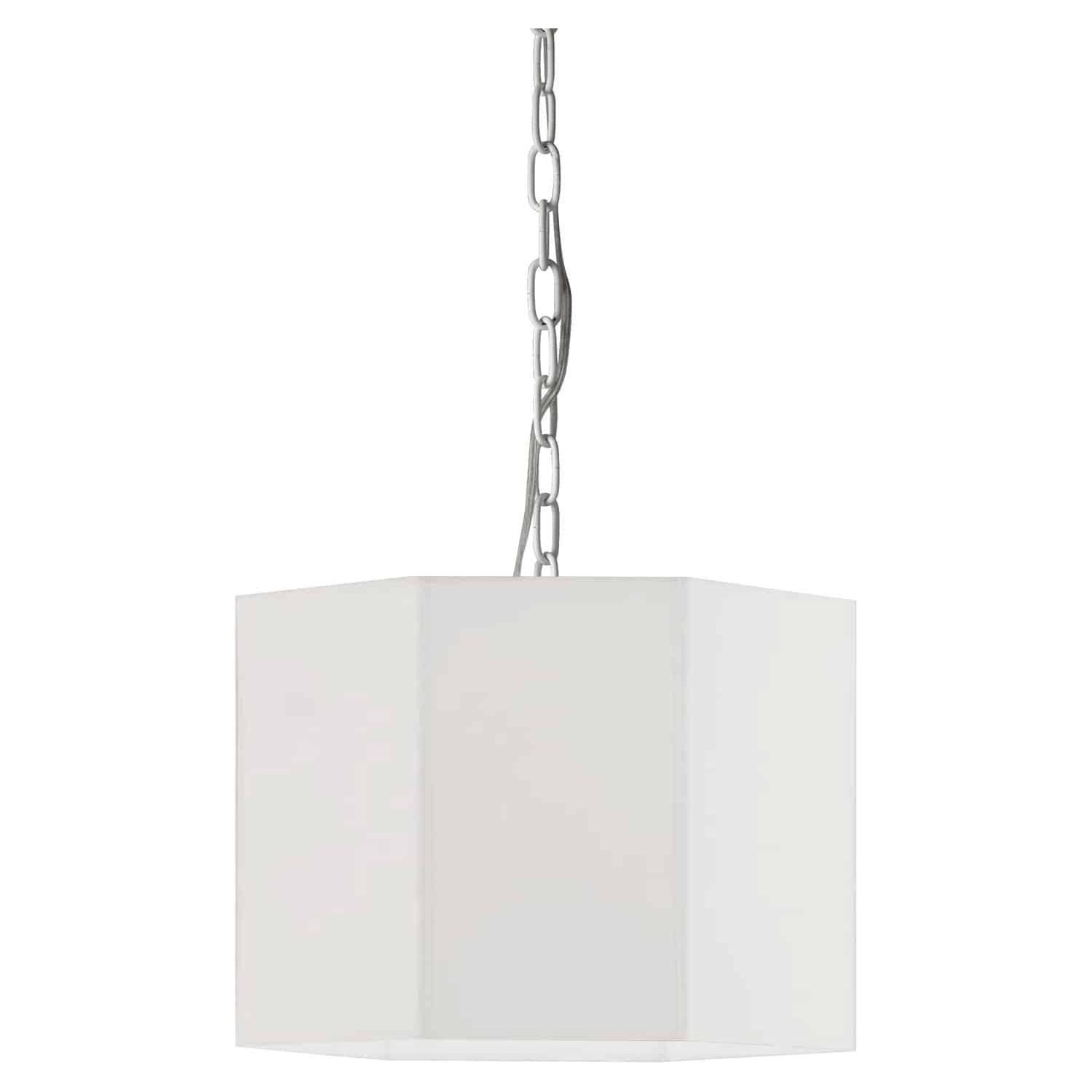 Octavia-Pendant by Dainolite is a considered statement for elevated interiors — a geometric, hexagonal fabric drum trimmed in warm metal that balances refined form with practical performance. Its crafted silhouette and polished trim read as modern hardware for luxury décor, bringing focused downlight and architectural presence to foyers, kitchens, and curated living spaces.