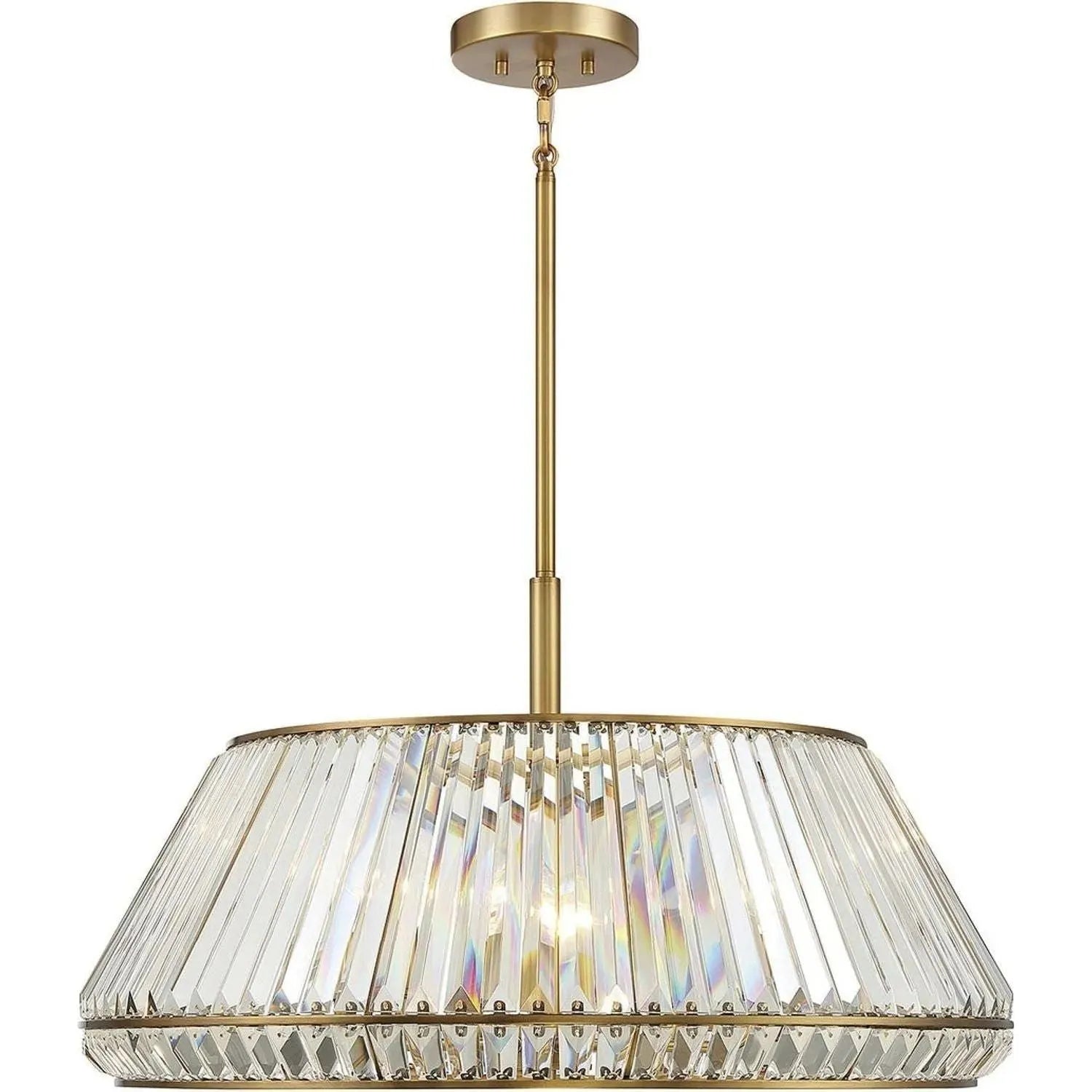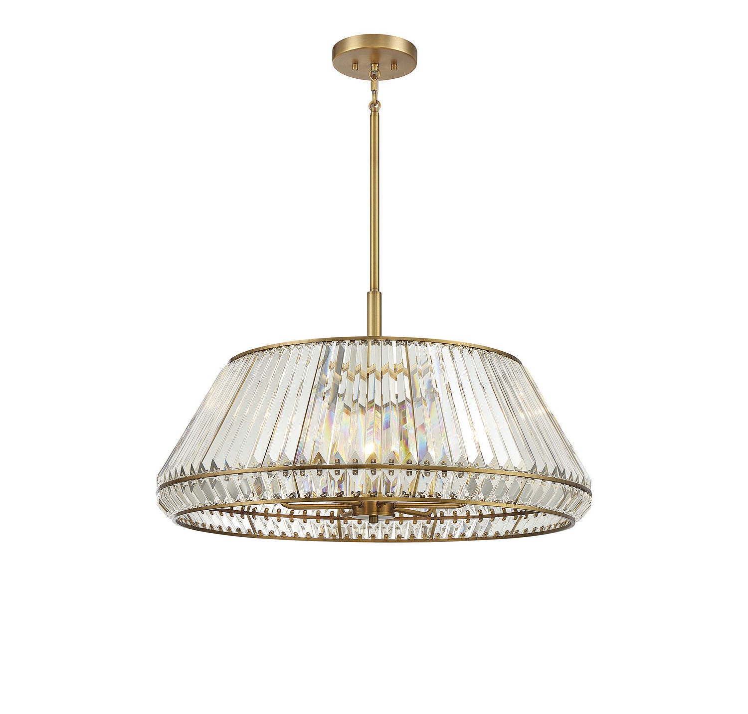 Ornez votre maison avec la beauté cristalline étonnante de la pyramide à 6 lumières Savoy House Suspension. Son abat-jour géométrique est orné de longs cristaux clairs fins et facettés pour un look qui rappelle un abat-jour plissé, mais avec tellement plus de glamour. Fini en laiton chaud. La pyramide mesure 29" de largeur et a une hauteur réglable allant de 16" à 70". Elle utilise six Candélabre ampoules de taille allant jusqu'à 60 watts par ampoule. Livré avec quatre tiges de 12" et une tige de 6", plus 80" de cordon.