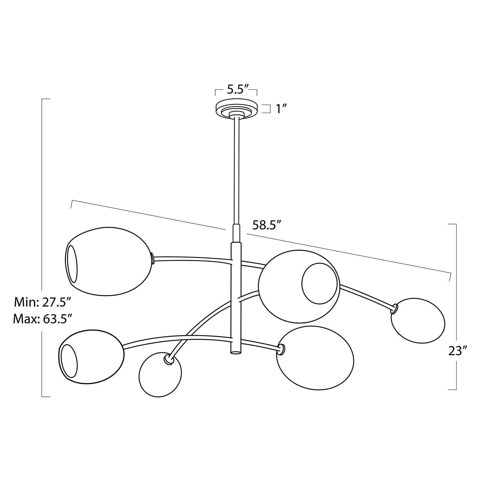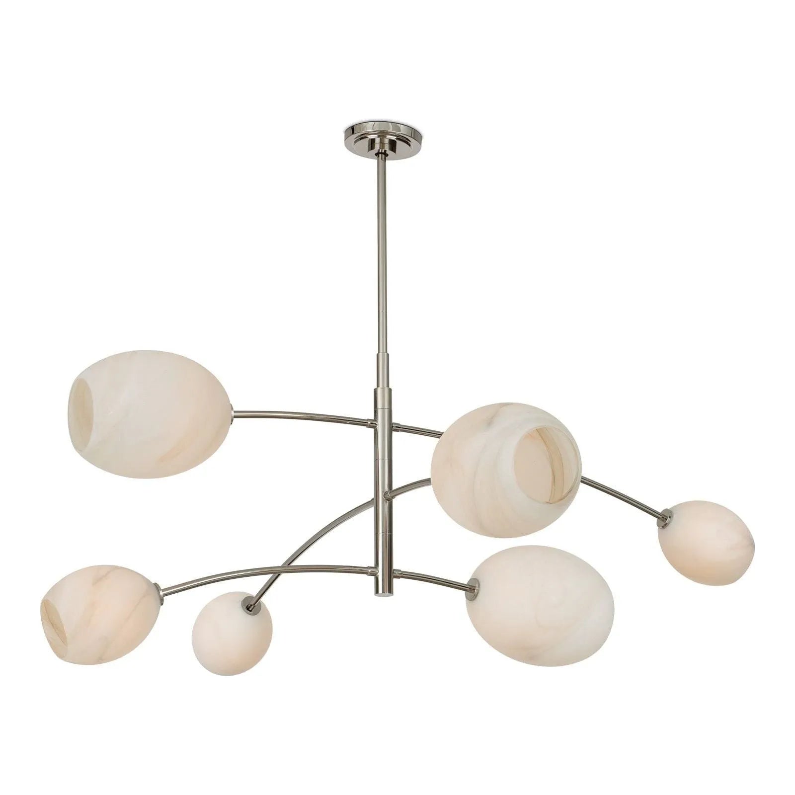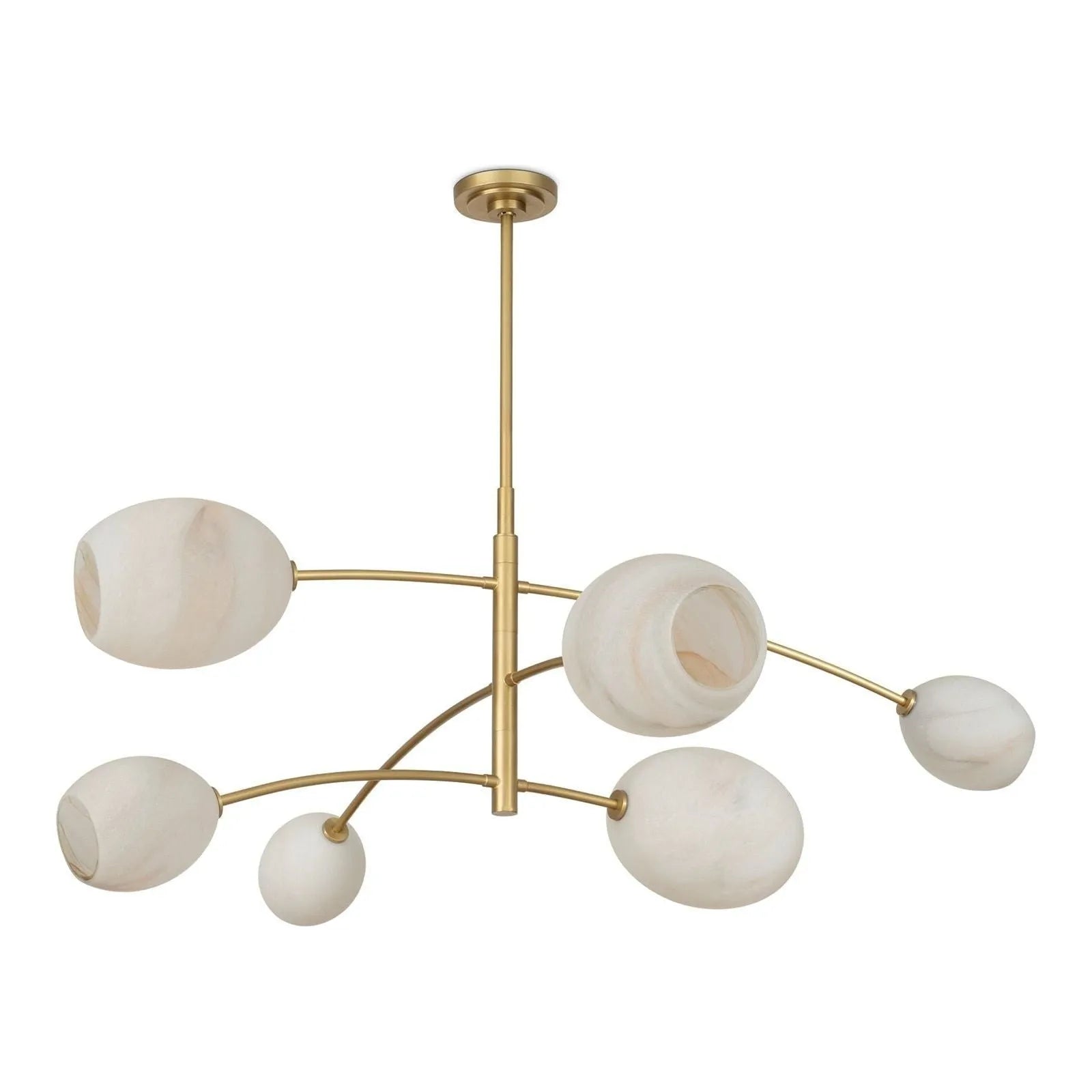 Artemis allie un design épuré à l'attrait du verre artisanal. Ses globes en verre ouverts de type albâtre ajoutent une sophistication maussade, créant une ambiance captivante et unique. Inspiré par le concept d'un mobile, Artemis présente des arches gracieusement équilibrées dans une finition en laiton naturel, ce qui en fait à la fois une source de lumière fonctionnelle et une superbe œuvre d'art moderne.