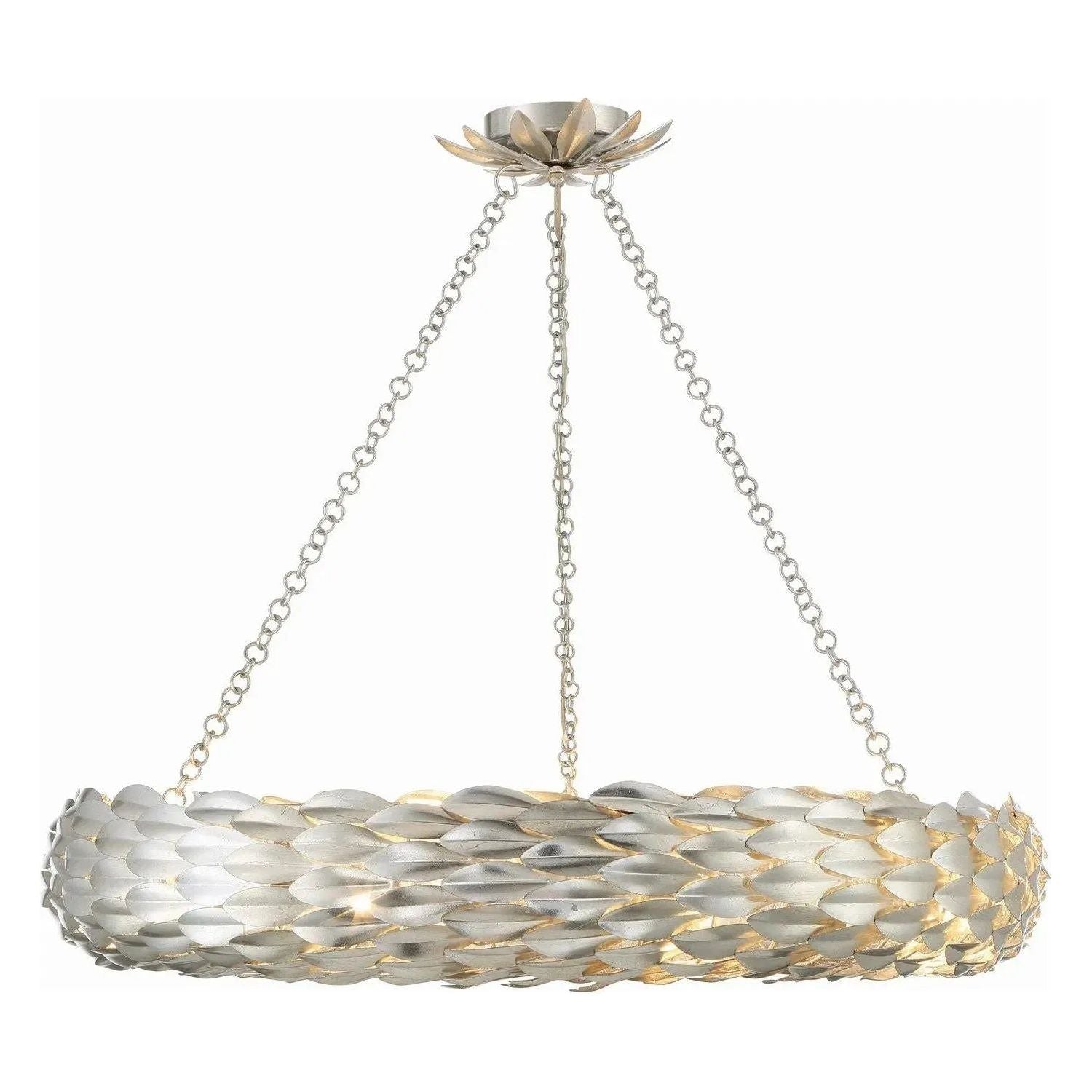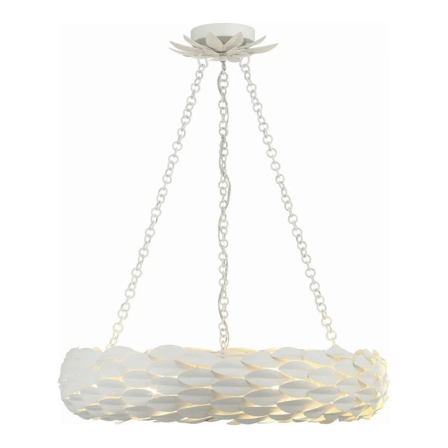 Des couches de feuilles individuelles en fer forgé offrent une lumière époustouflante, unique et fonctionnelle. L'élégance sur mesure des fleurs métalliques chatoyantes est parfaite pour une maison de transition, bien que suffisamment polyvalente pour être incorporée dans n'importe quel design moderne. Bien qu'idéal pour une chambre, un salon ou une cuisine, il peut être utilisé partout où vous souhaitez ajouter un peu de glamour.