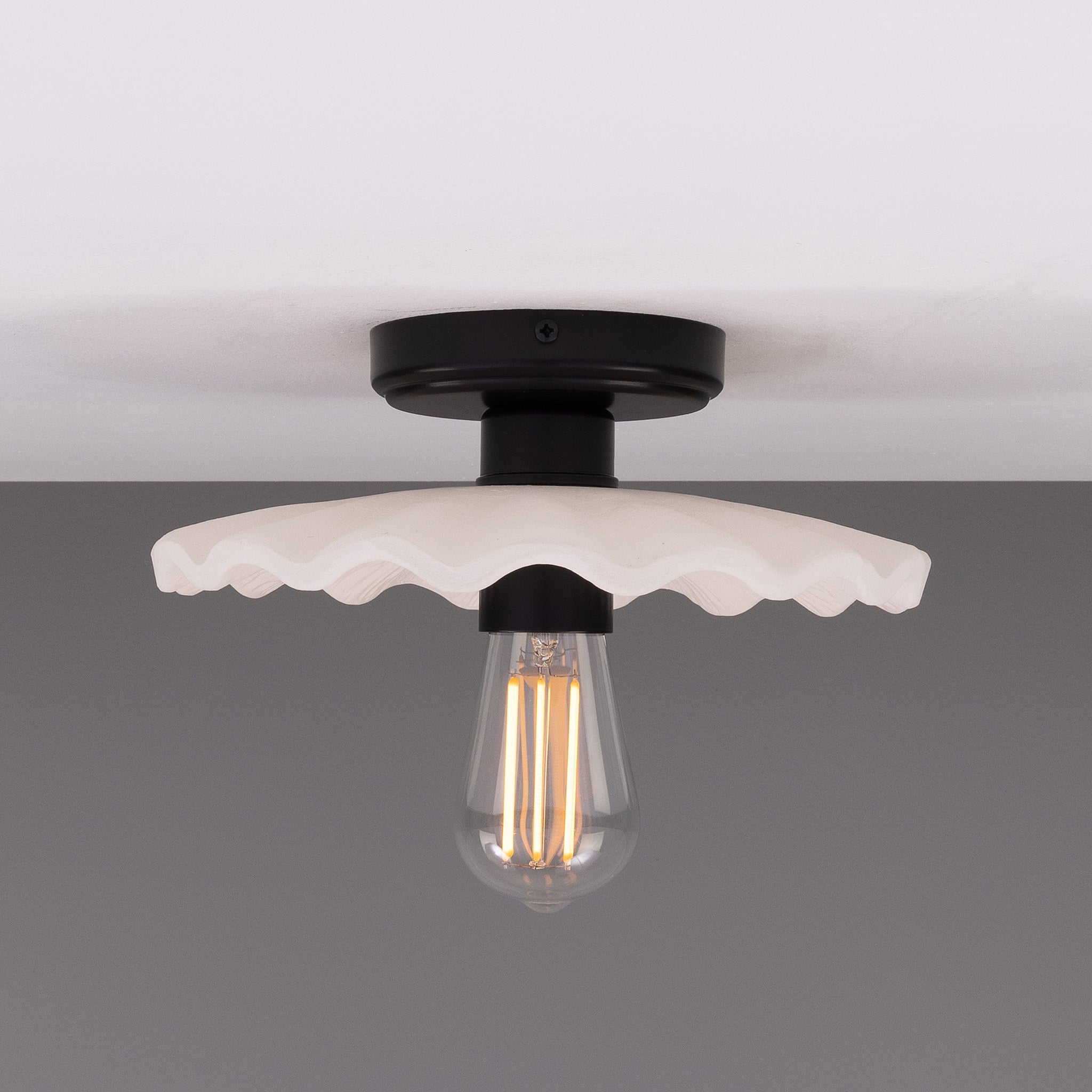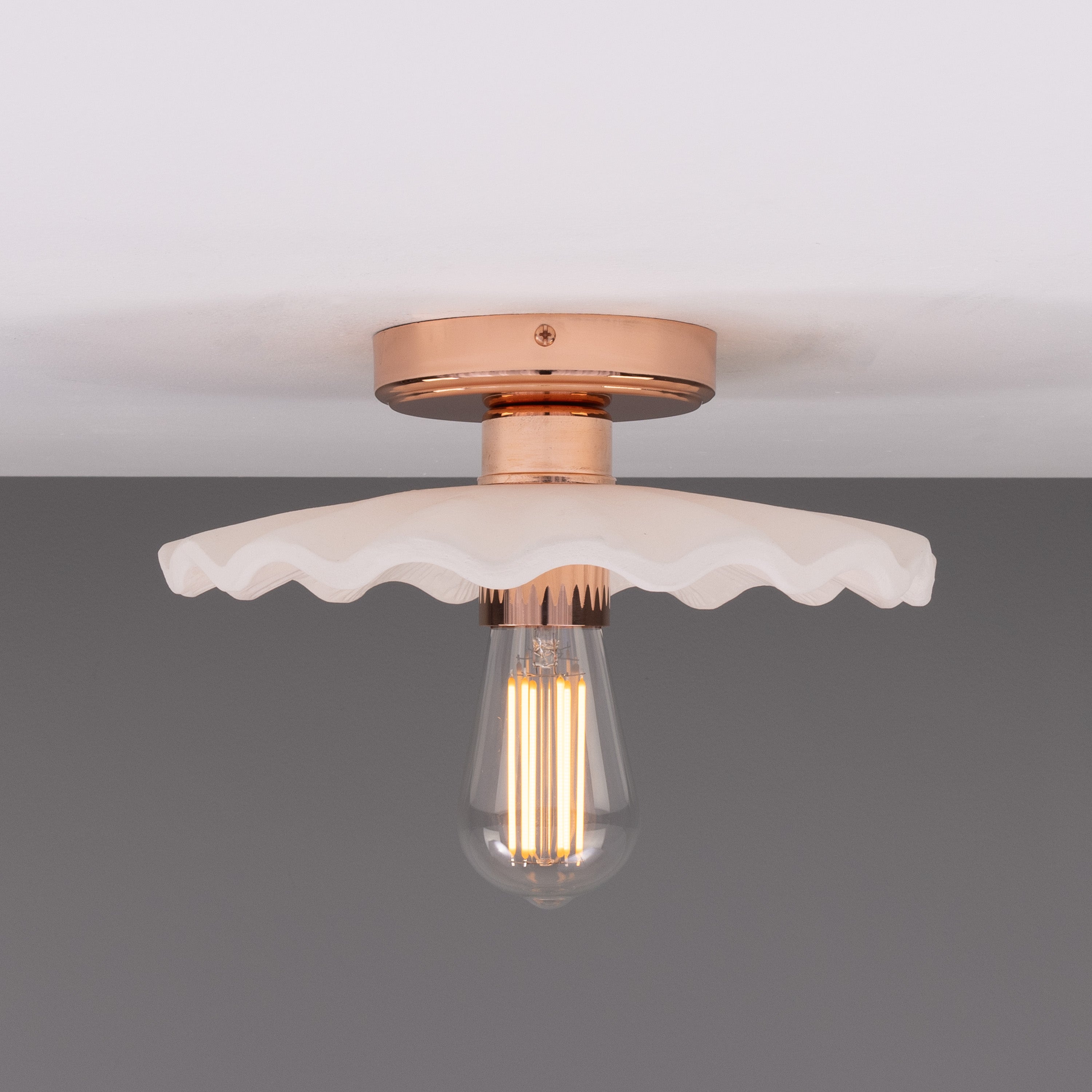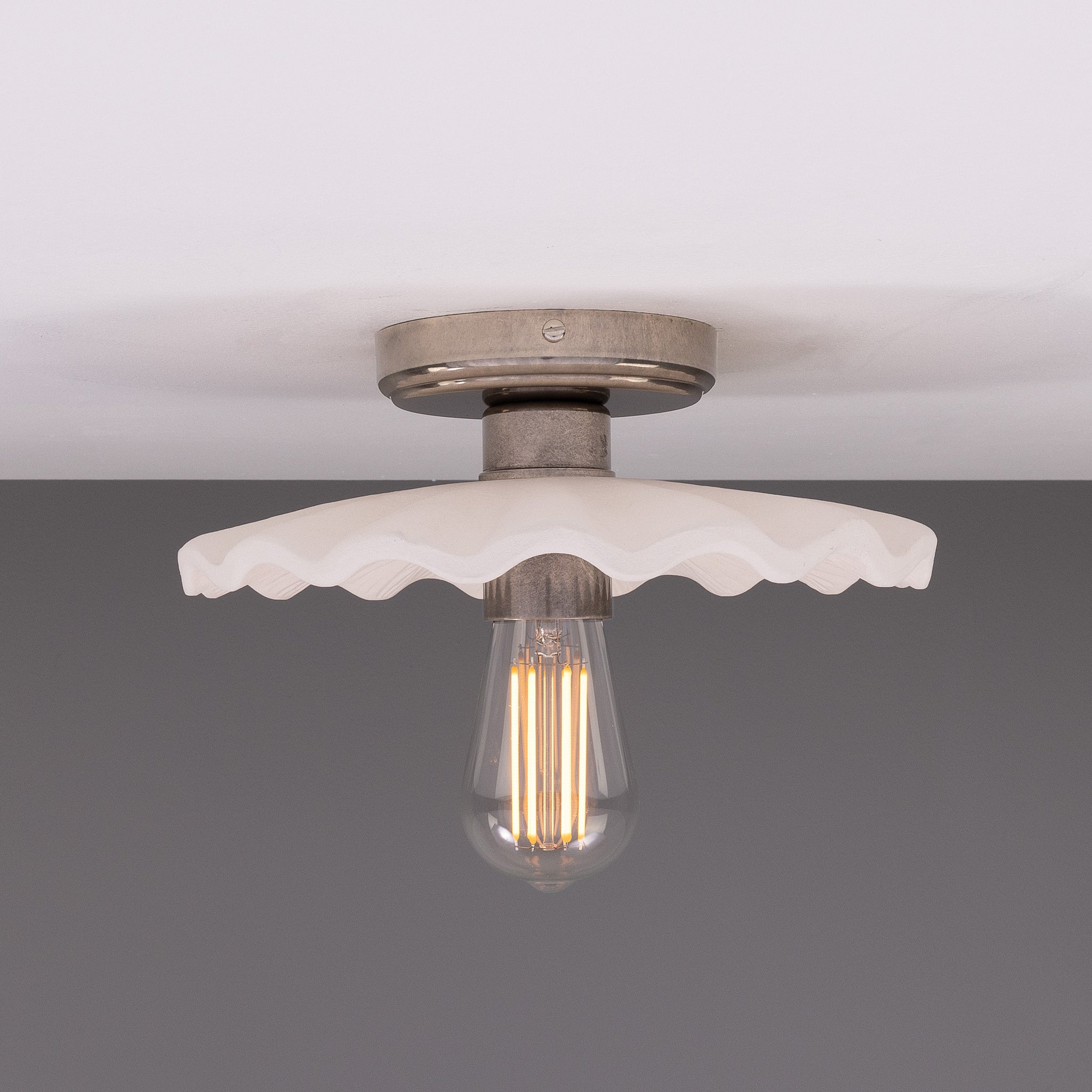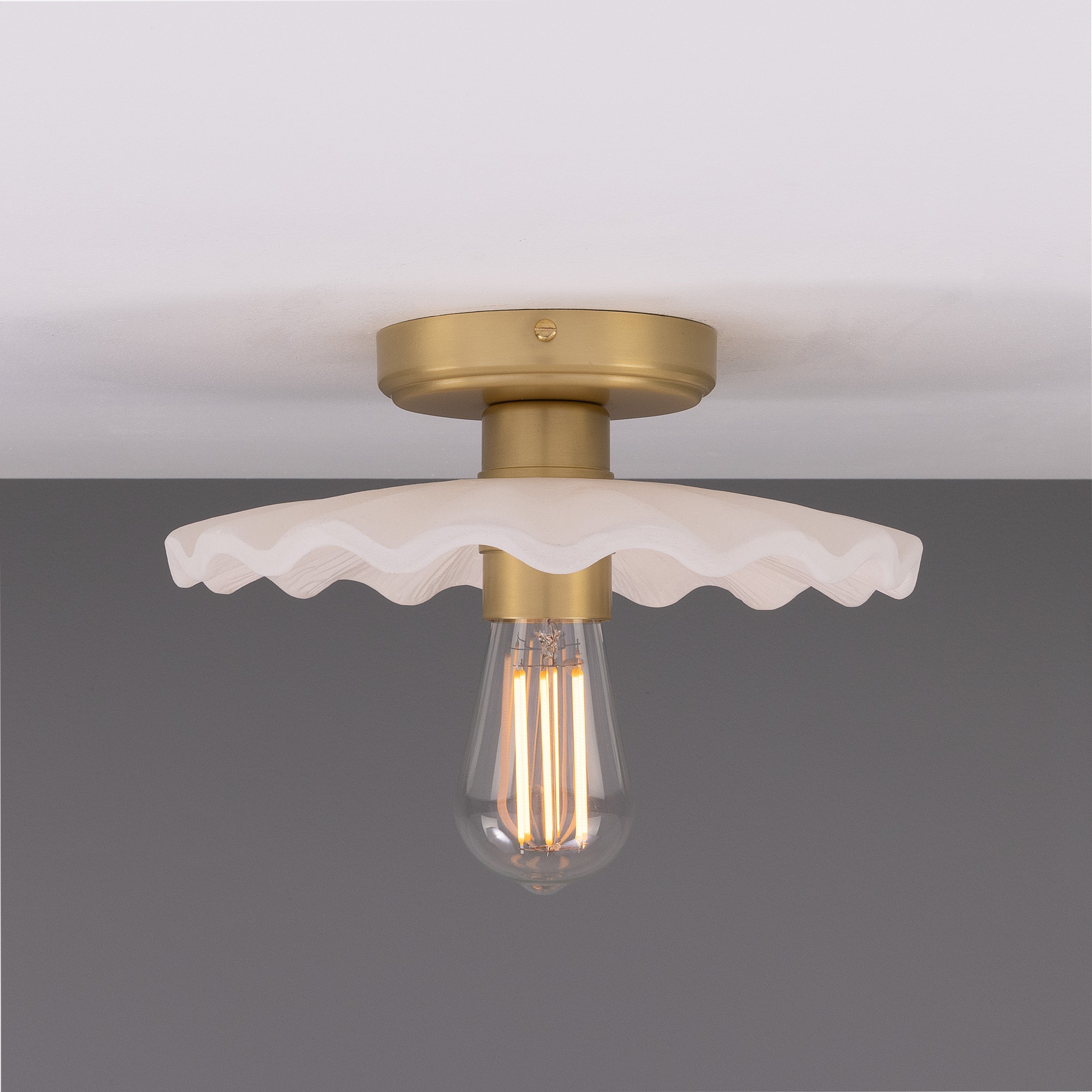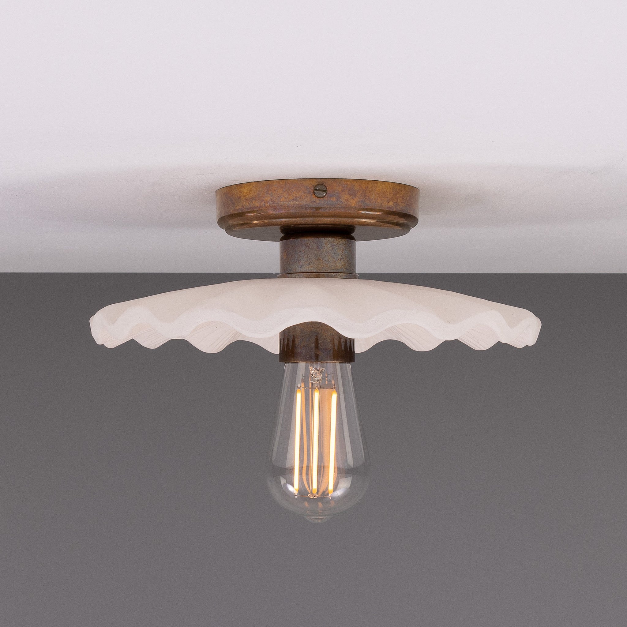 Kapok Ceiling Light by Mullan Lighting is a considered statement for refined interiors — its sculpted opal glass shade and aged-metal canopy read as modern artisan lighting with a quiet, architectural presence.