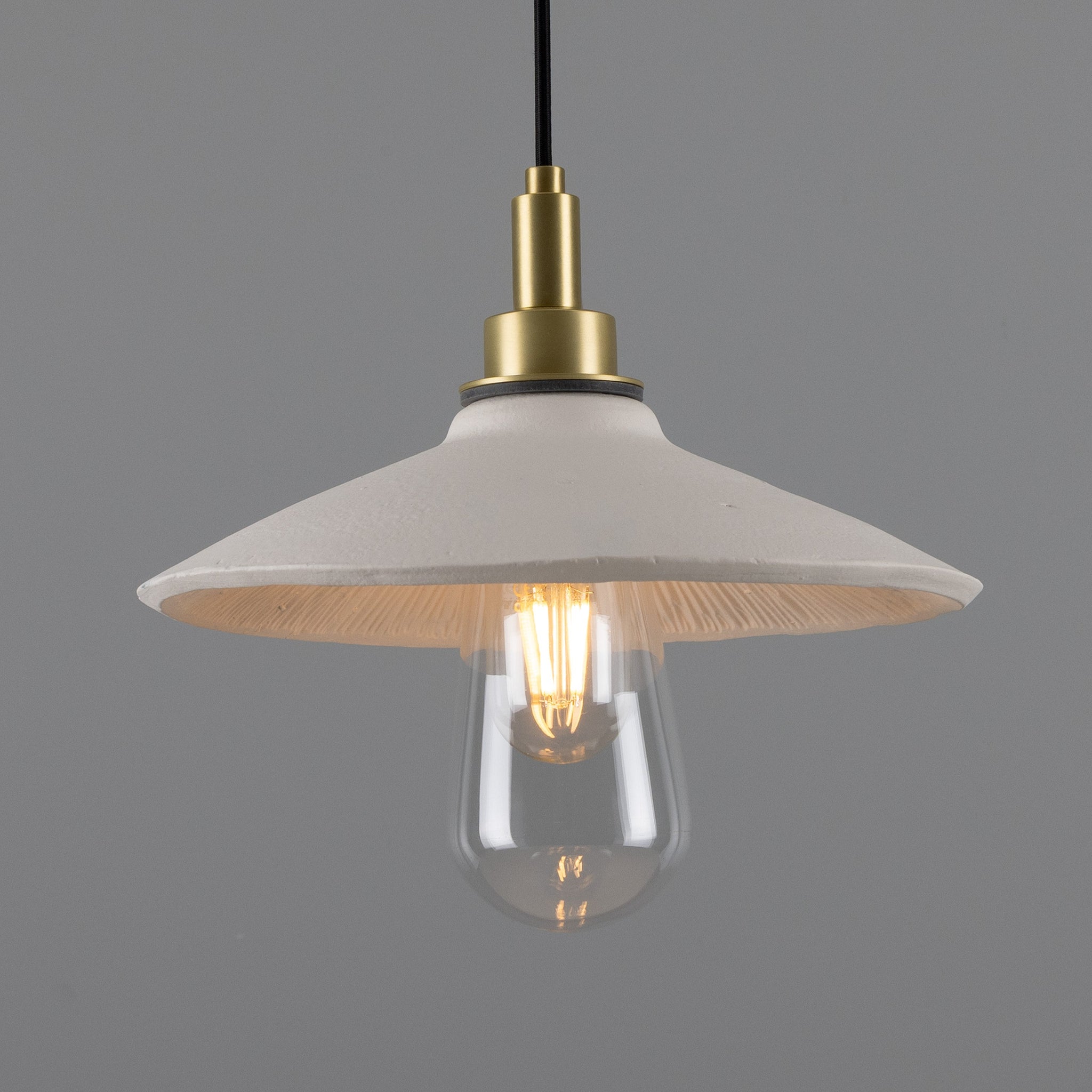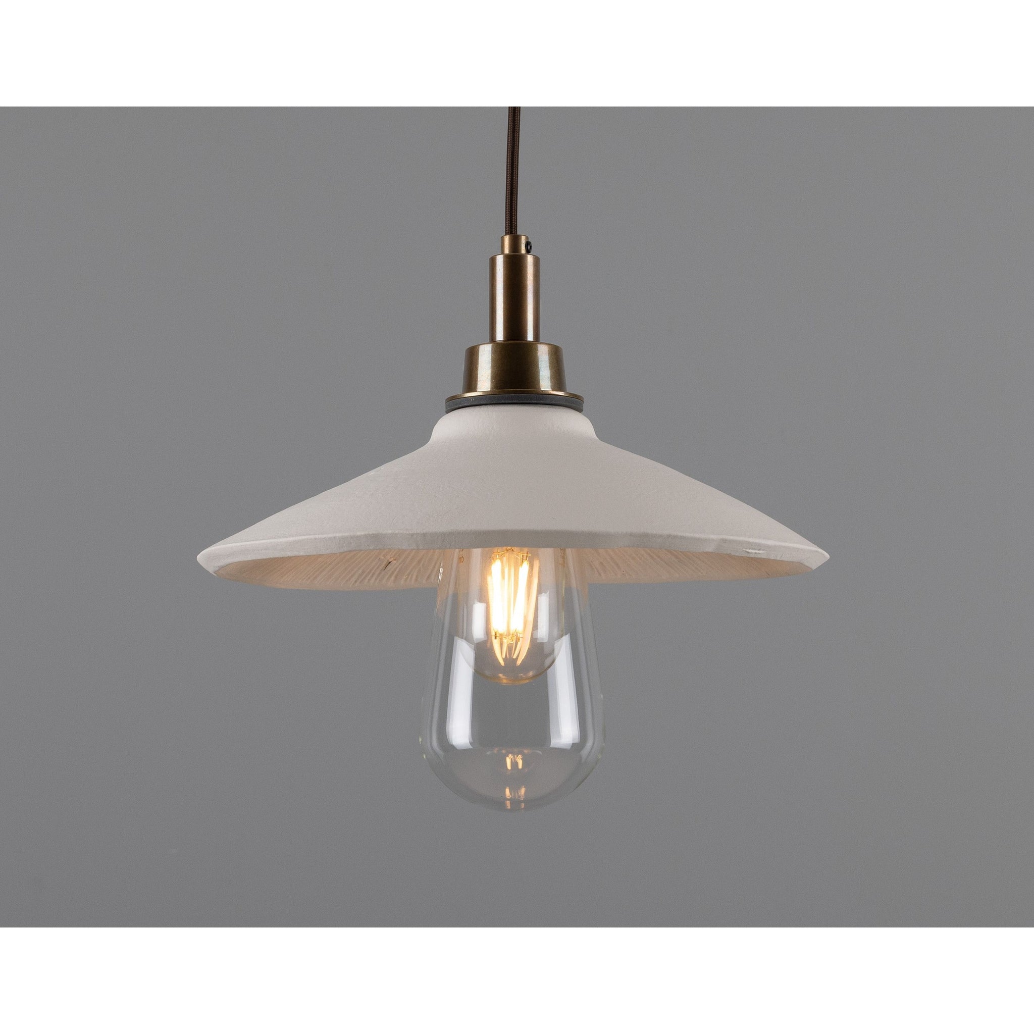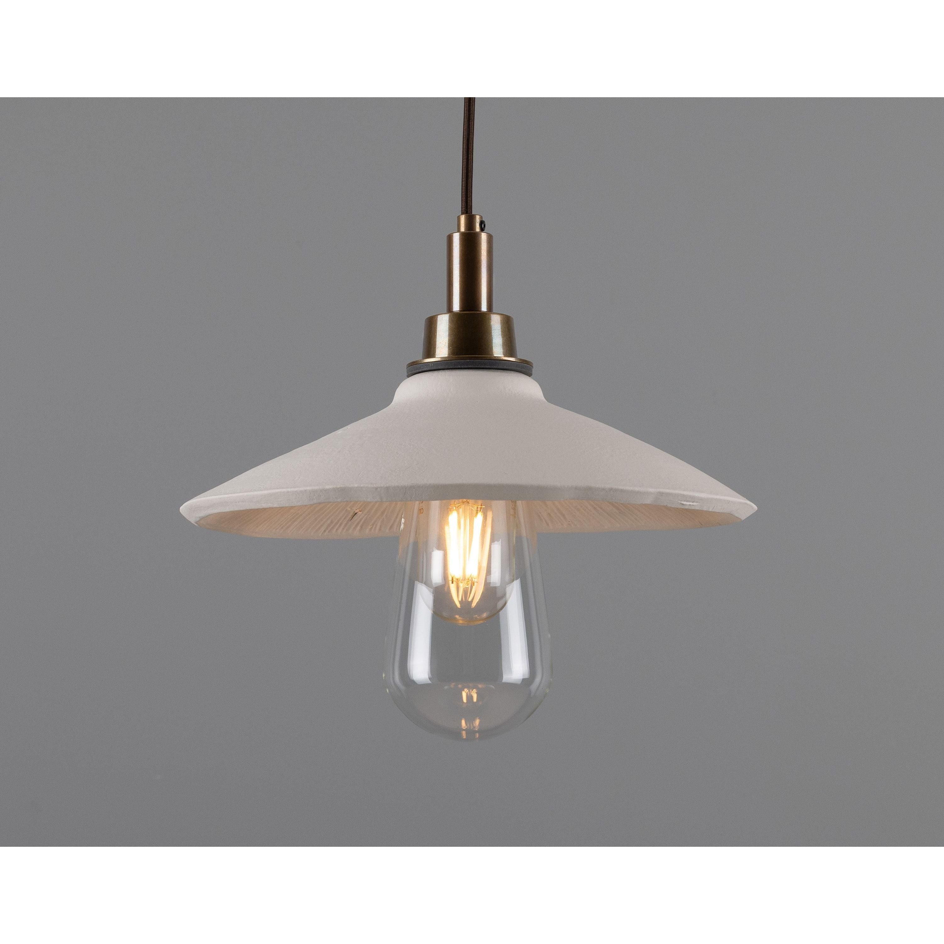 Crafted with attention to material and finish, the pendant combines a subtly textured ceramic shade and brass-finish hardware for an elevated, tactile presence. Its IP44 rating makes it suitable for kitchens, bathrooms and covered outdoor zones where style must meet durability.