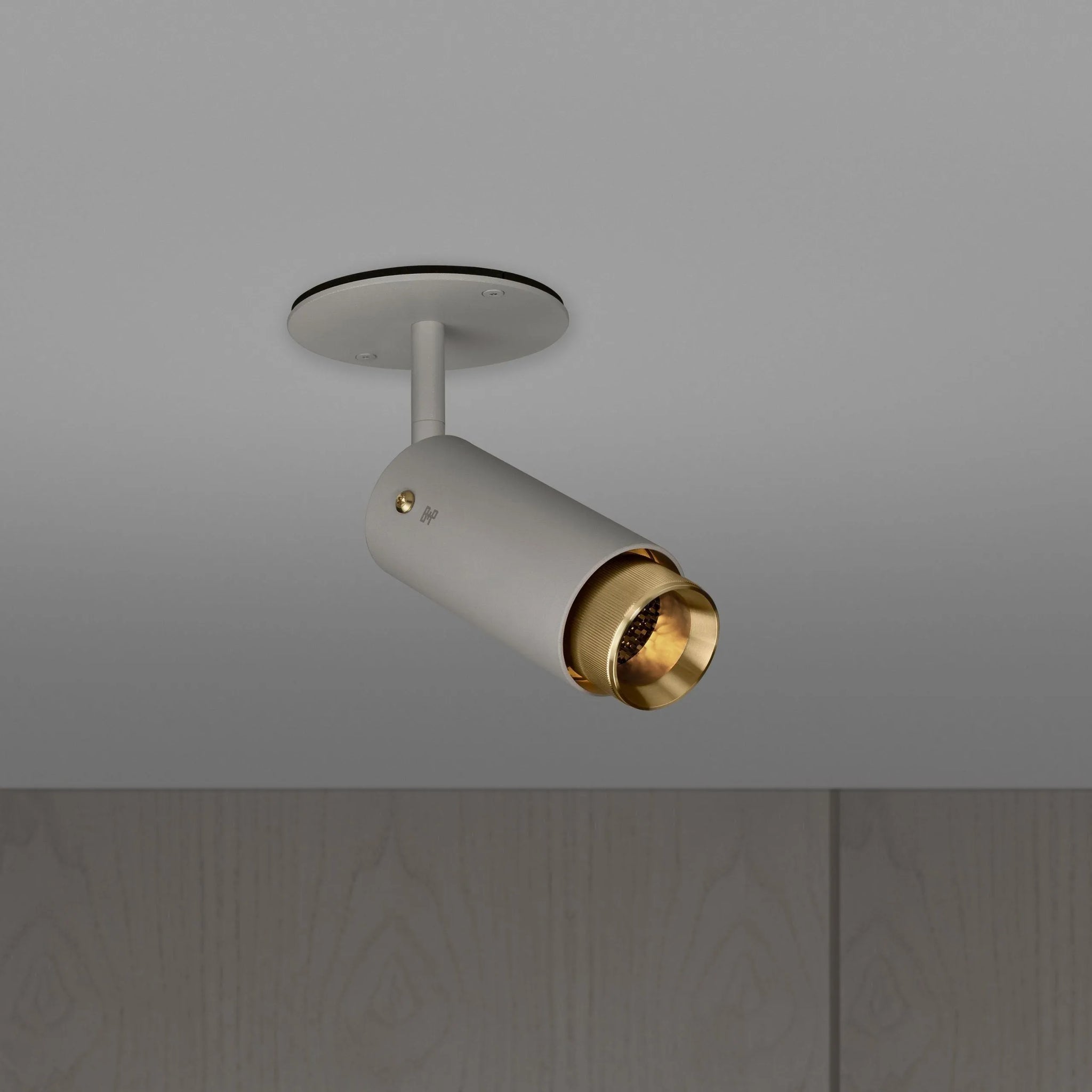 Le projecteur est doté de notre déflecteur moleté linéaire emblématique et de vis Torx usinées, tous deux en acier inoxydable massif avec une finition PVD bronze. Le déflecteur capture la lumière et crée une lueur métallique délicate, tandis qu'un filtre en nid d'abeille émet un projecteur directionnel précis et non éblouissant.