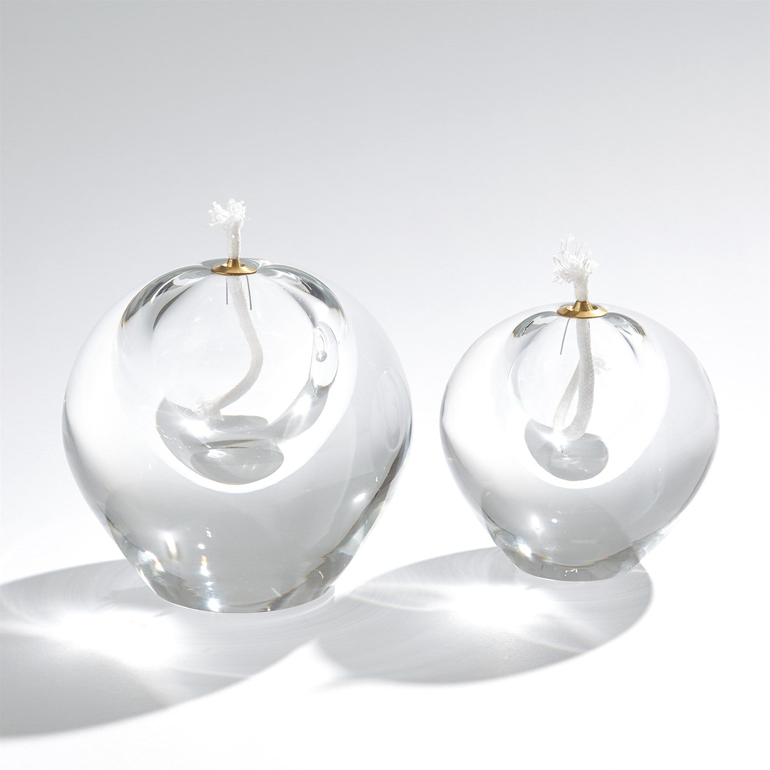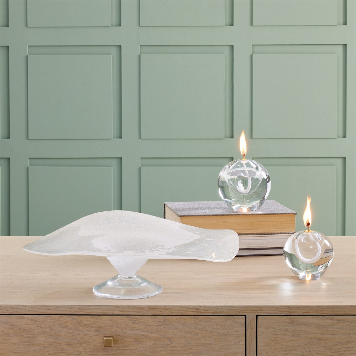 Notre bougie à l'huile Daphné célèbre la beauté du verre artisanal polonais. Avec sa forme conique unique, ses parois épaisses et son réservoir à huile rechargeable, ce modèle apporte nostalgie et art à toutes les tables.