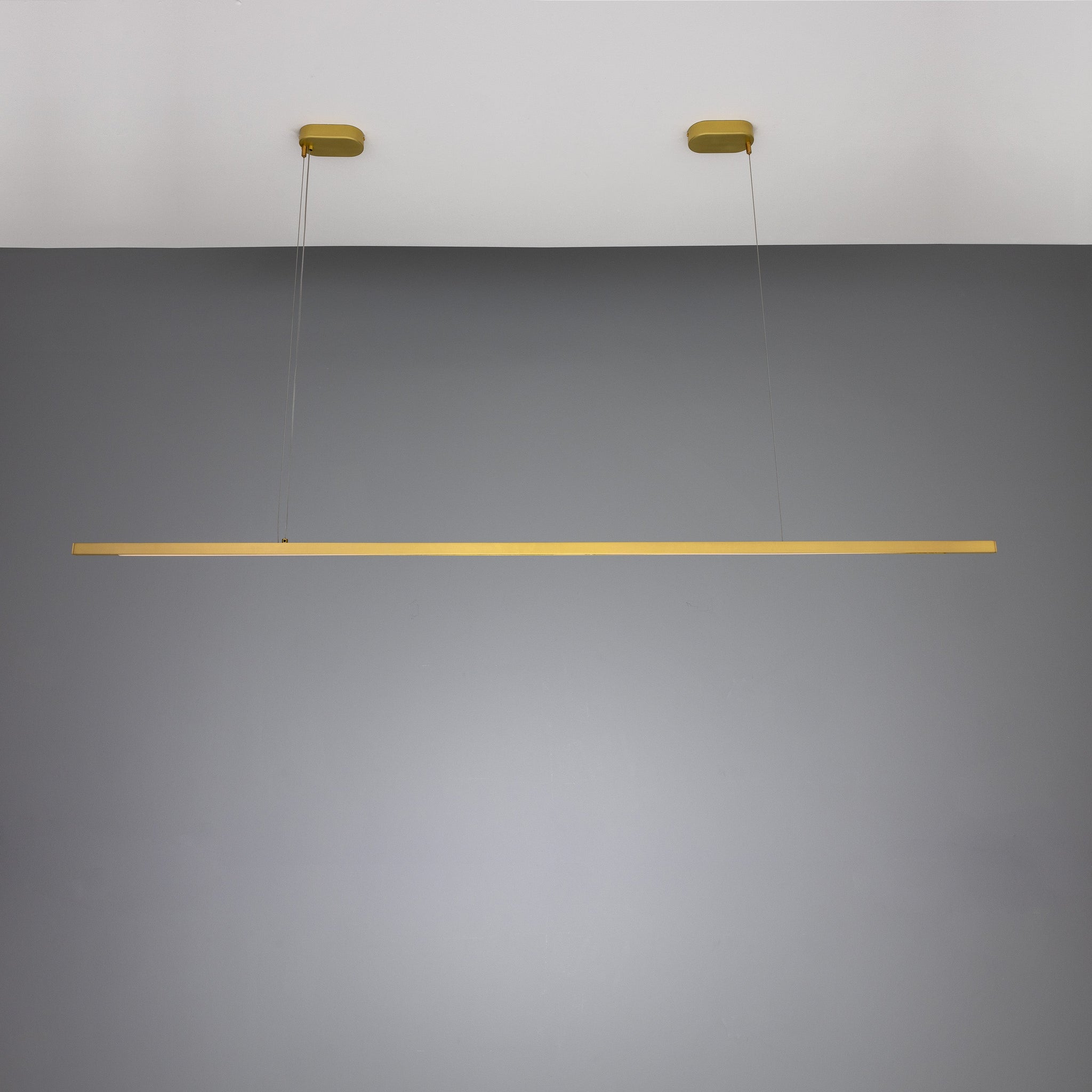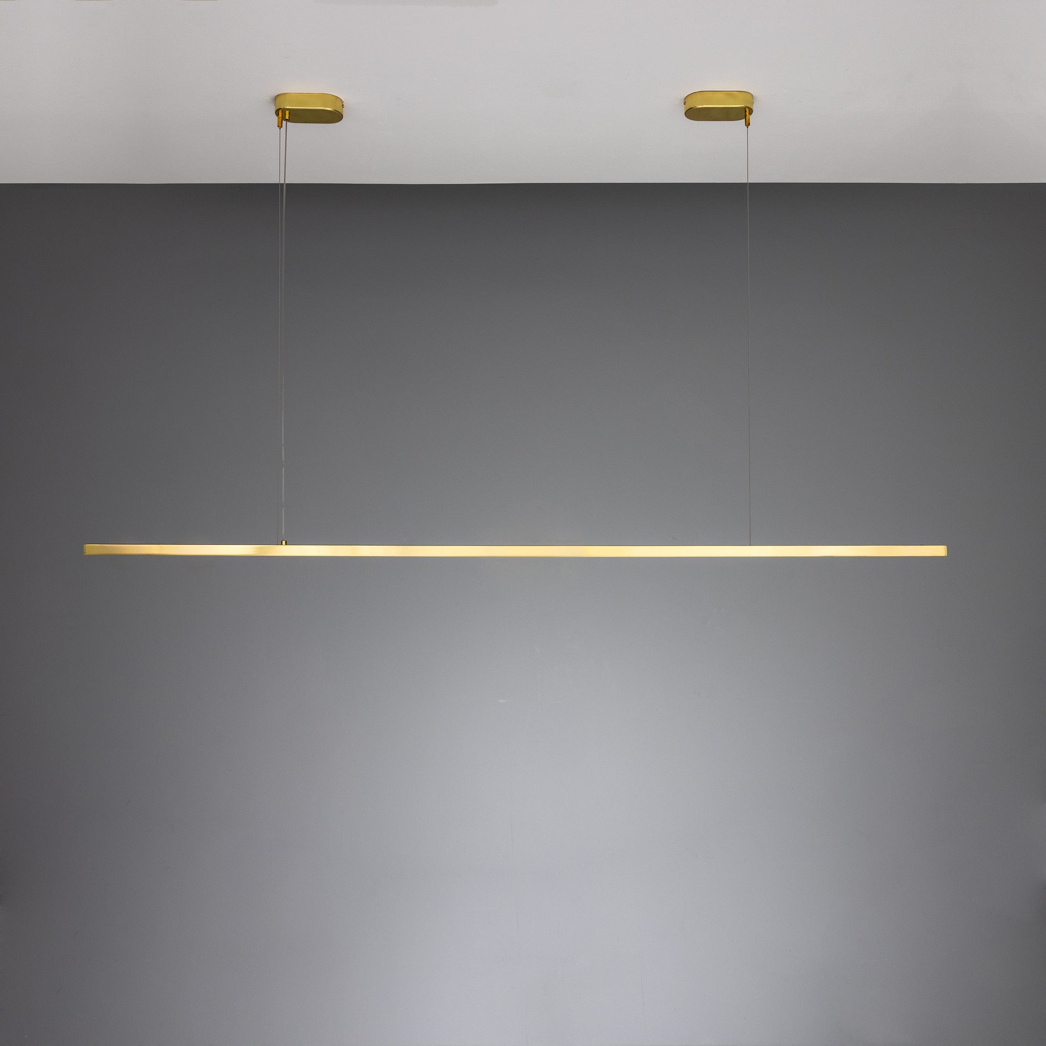Design & craft: precision-extruded metal bar, low-profile ceiling mounts, and tensioned suspension deliver an even, glare-controlled wash. The fixture reads as furniture-scale lighting—clean lines that anchor dining tables, kitchen islands, and project-focused workspaces.
