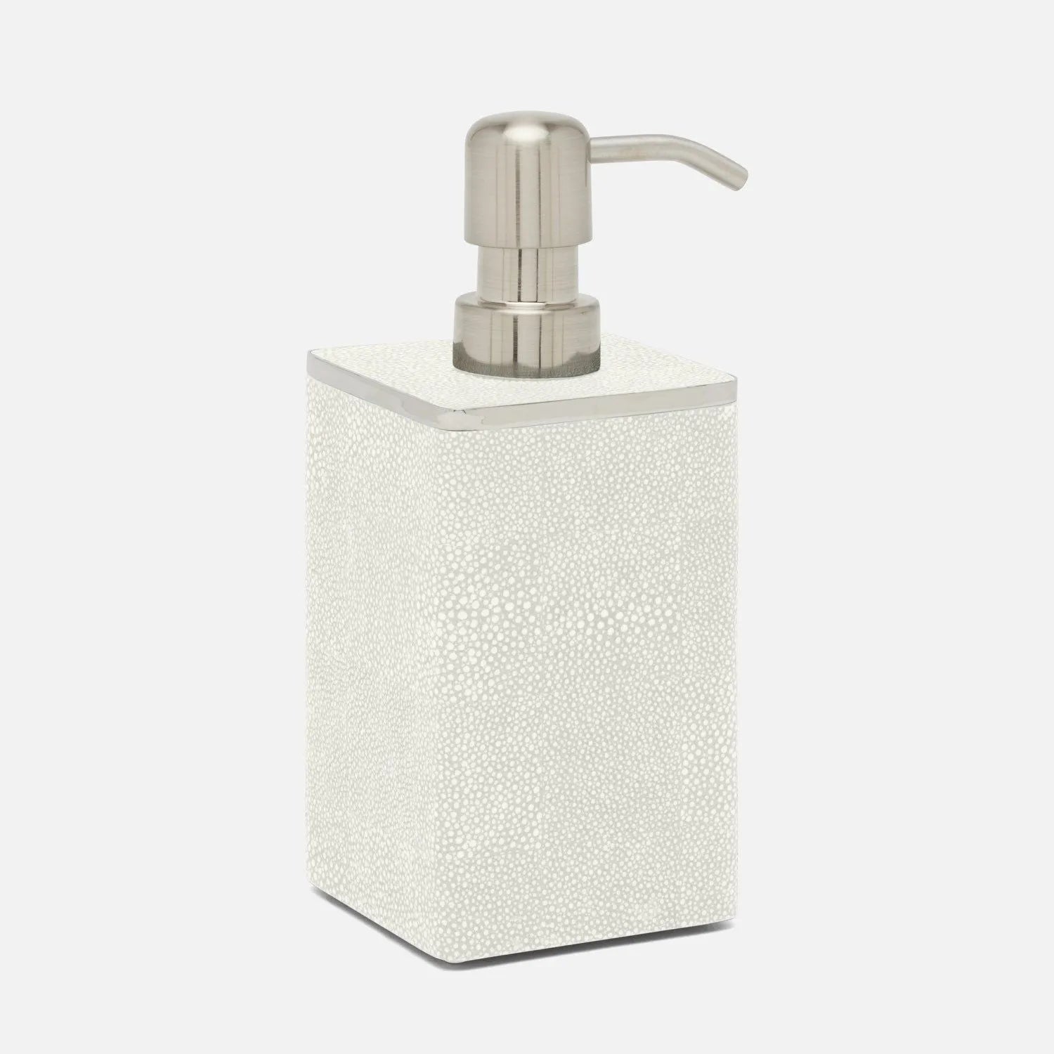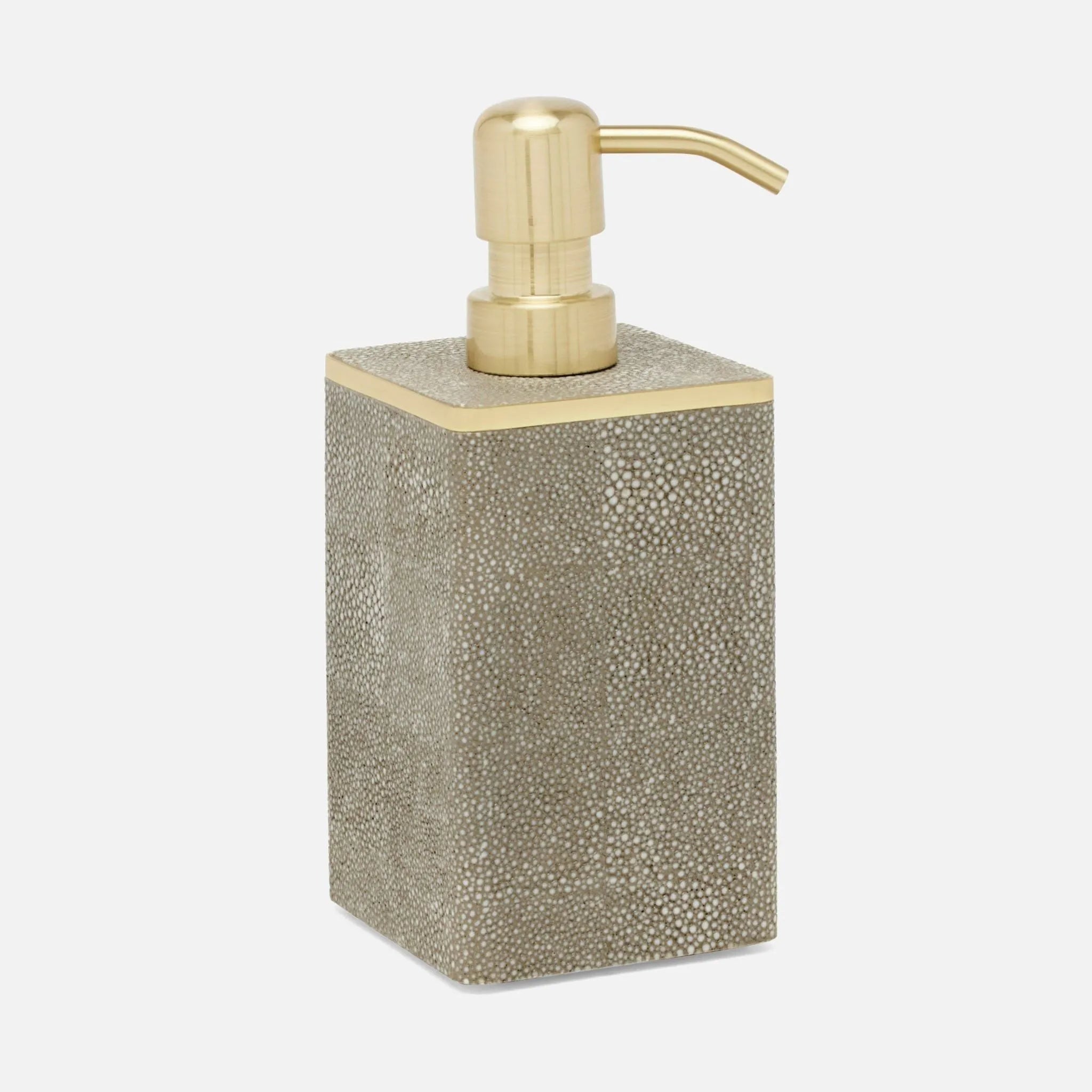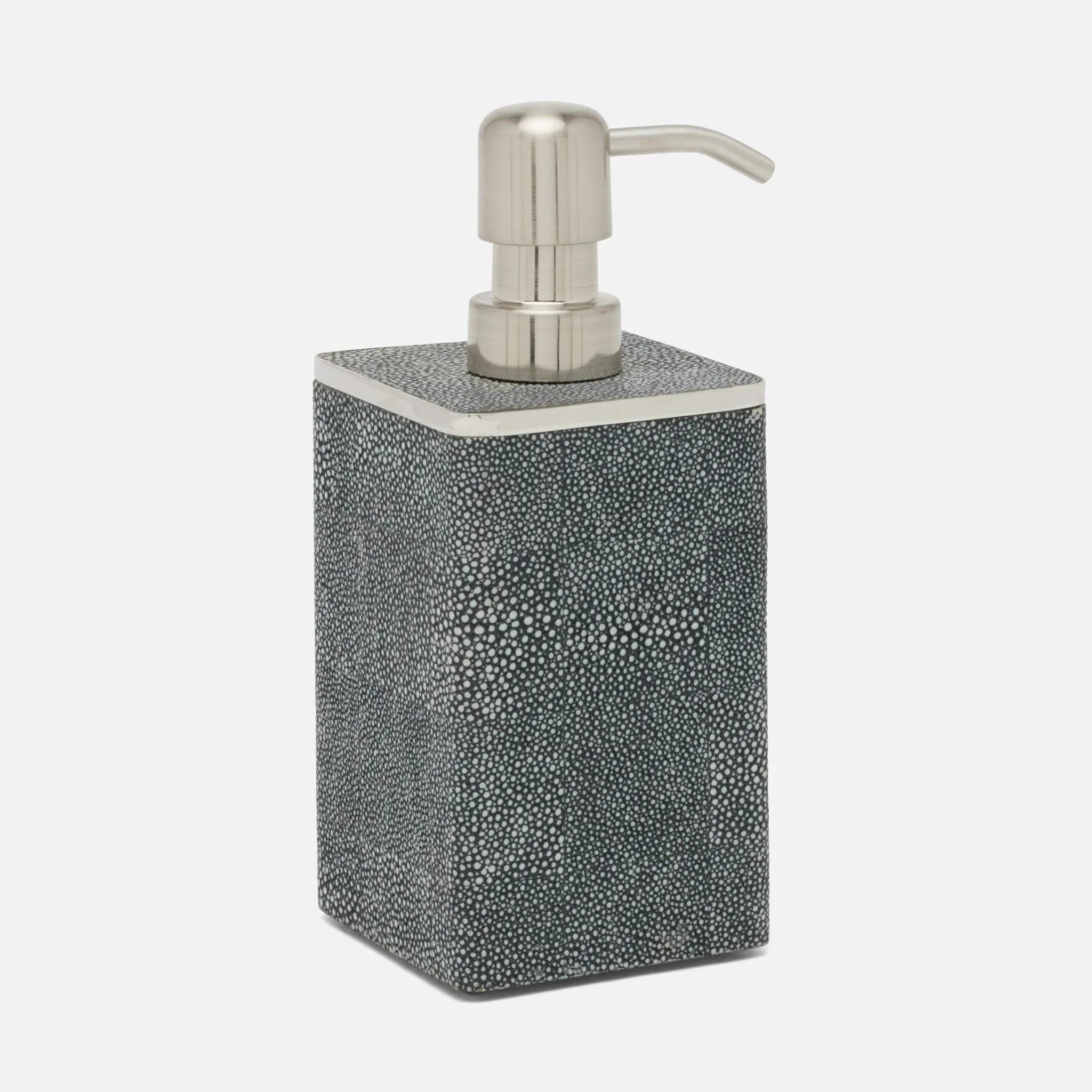 En associant le galuchat synthétique à de délicates garnitures dorées ou argentées, Bradford élève l'ensemble d'accessoires de salle de bain classique au summum du luxe.