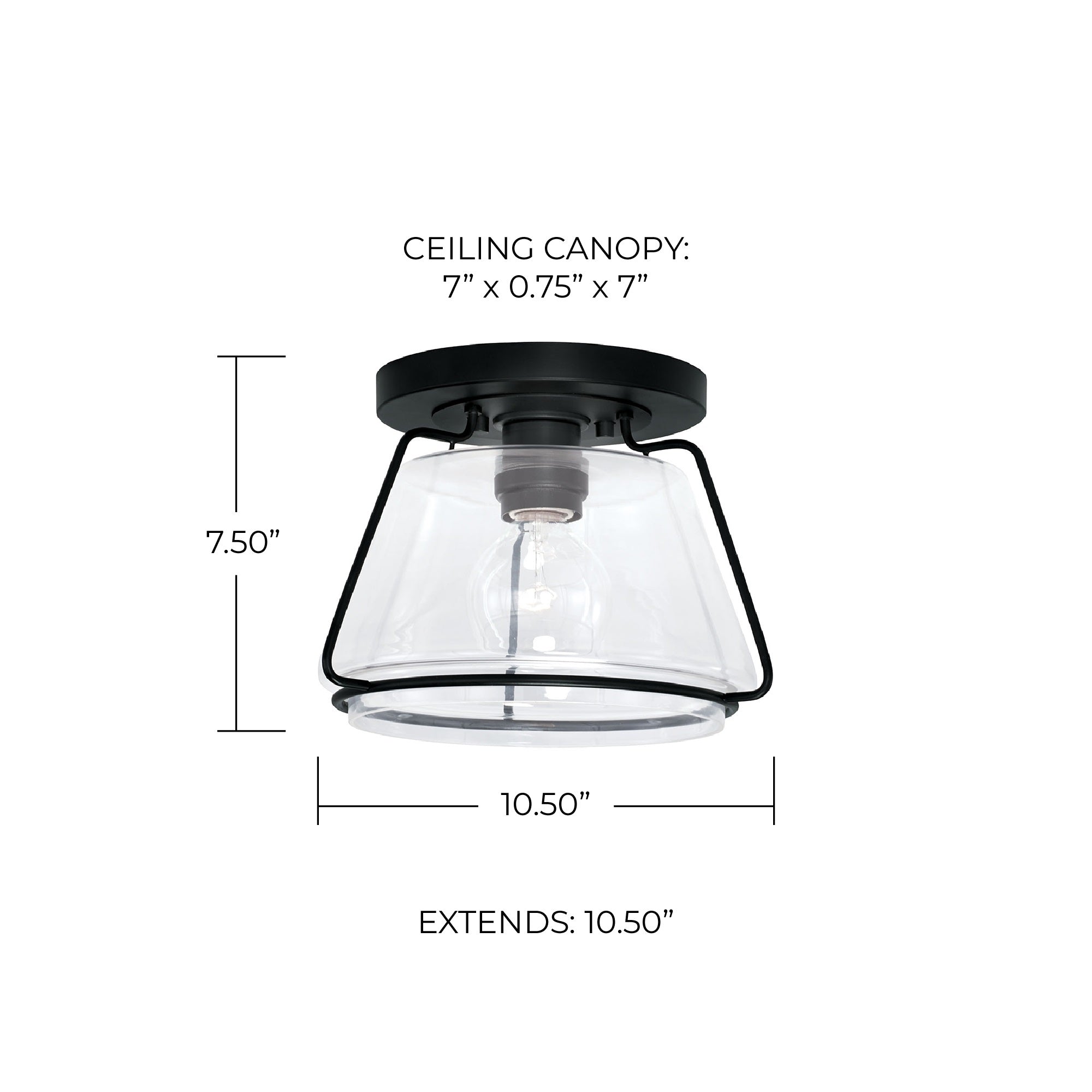 Elevate your space with the McLane Flush Mount, a 1-Light ceiling fixture that blends vintage lantern charm with modern farmhouse flair. The Matte Black finish on the cage silhouette is the perfect complement to the tapered clear glass cloche, delivering a warm, inviting glow that suits rustic retreats and contemporary interiors alike.