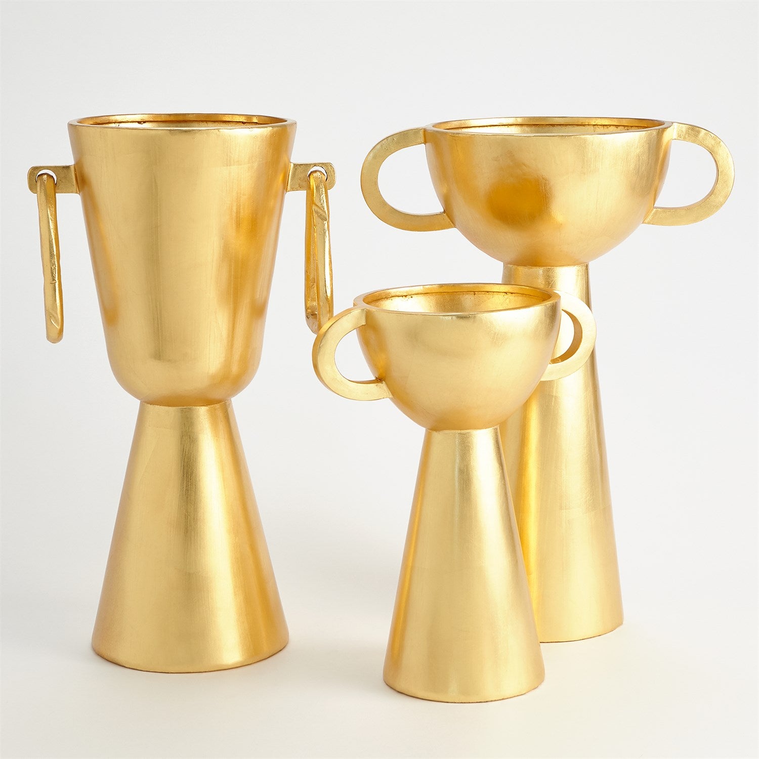 De grande taille, la collection d'urnes trophées et de coupes d'amour est fabriquée en fer avec une finition à la feuille d'or.