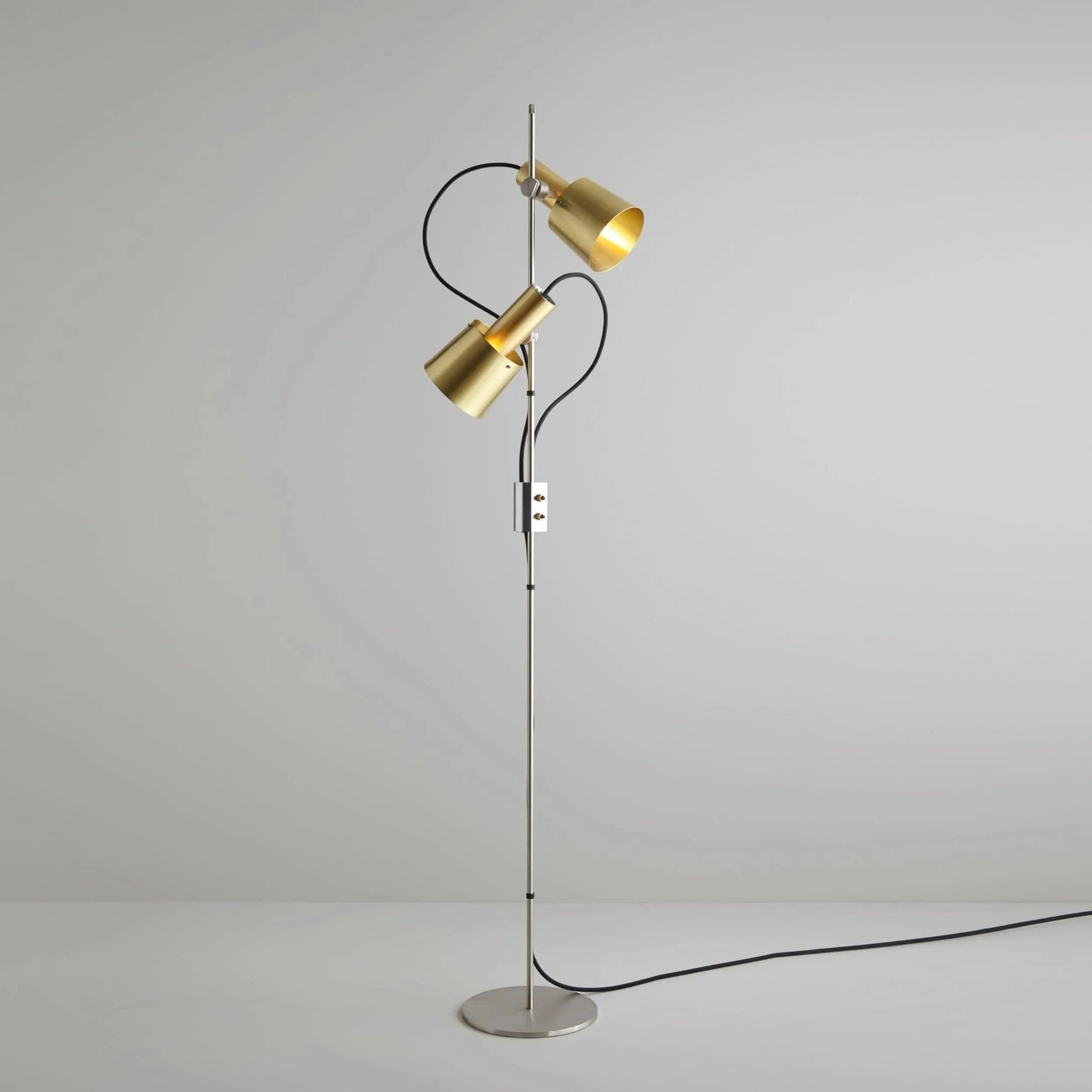 Un lampadaire à double tête, reflétant l'inspiration distinctive des années 1960 derrière toute la gamme Chester. Détails exquis, le lampadaire Chester a 2 abat-jour saisissants en cuivre satiné ou en laiton satiné avec un travail et une base en métal en acier inoxydable. Un câble tressé en coton noir avec un interrupteur fixe apporte un détail contemporain et pratique.