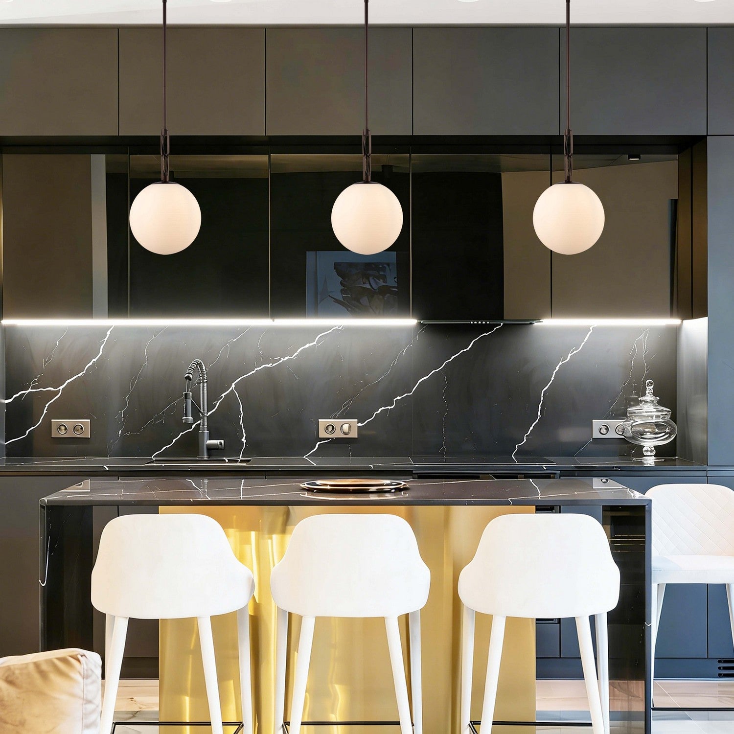 La collection Concentro offre une interprétation saisissante du design des globes modernes, alliant forme sculpturale et éclairage rayonnant. Encapsulés dans une élégante sphère métallique, les globes en verre à la douce lueur semblent flotter avec aisance, créant une ambiance lumineuse dynamique et captivante. Chaque globe en verre blanc strié diffuse la lumière uniformément, produisant une douce lueur chaleureuse qui sublime les salles à manger, les salons et les espaces ouverts. La disposition aléatoire et intentionnelle des globes ajoute du mouvement et de la profondeur, conférant au luminaire une présence artistique à la fois contemporaine et intemporelle. Plus qu'une simple source de lumière, Concentro est une véritable pièce maîtresse, attirant le regard tout en préservant l'équilibre et l'harmonie de l'espace. Disponible en finitions bronze foncé et chrome poli, la collection Concentro s'intègre facilement à une variété d'intérieurs modernes et contemporains. Le bronze foncé apporte chaleur et contraste, tandis que le chrome poli offre un aspect net et réfléchissant, idéal pour les décors épurés. Conçue pour les amateurs d'éclairage architectural de caractère, la collection Concentro apporte beauté sculpturale, lumière subtile et sophistication moderne à votre intérieur.